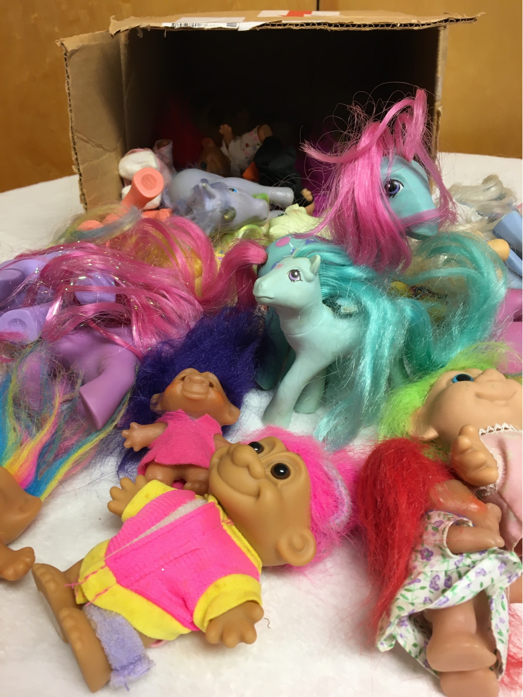 Flashback to My Pretty Pony and even further back to Trolls...what a fun collection! The box is chock full with a wide variety of ponies and trolls. Enjoy.
