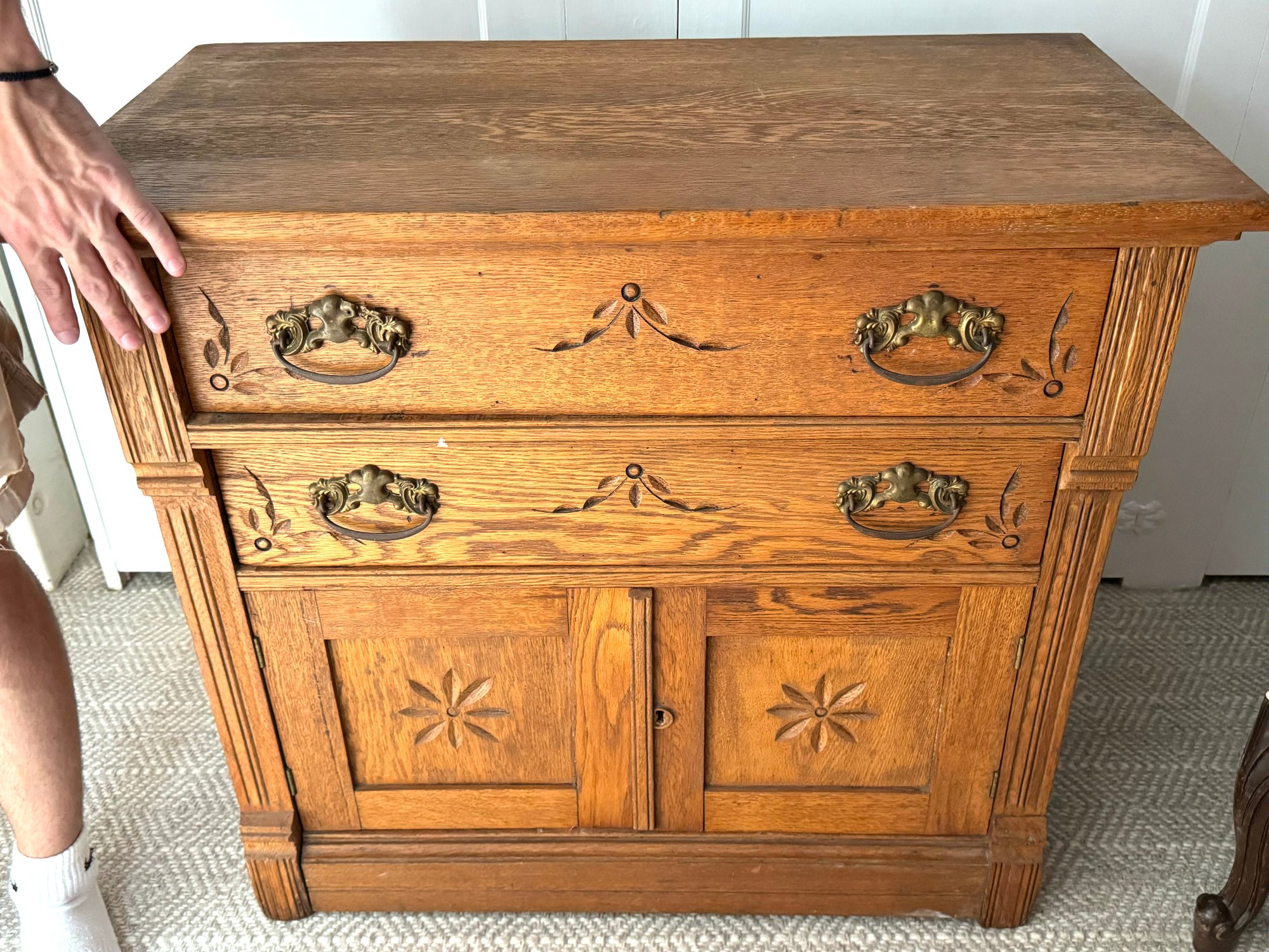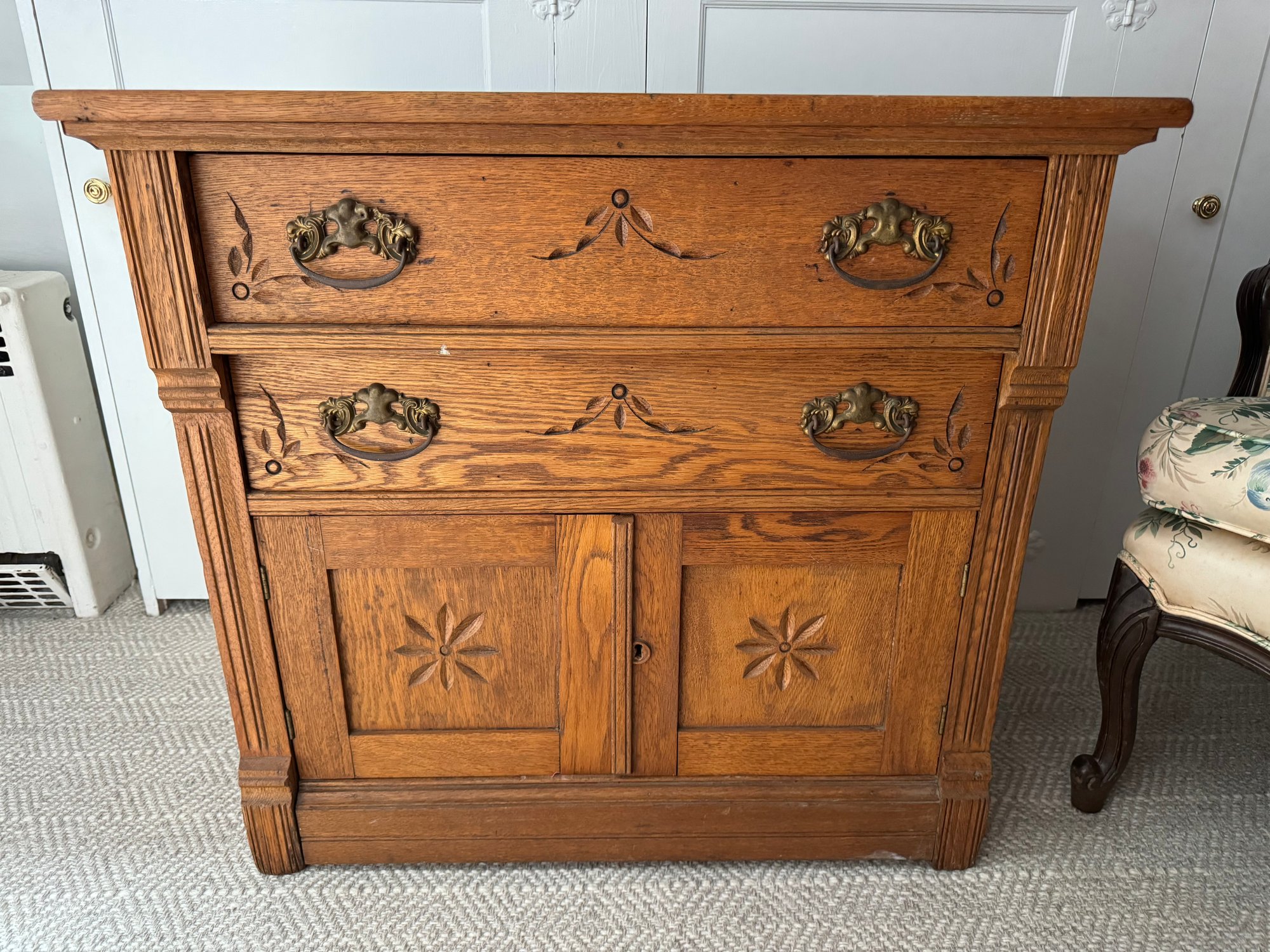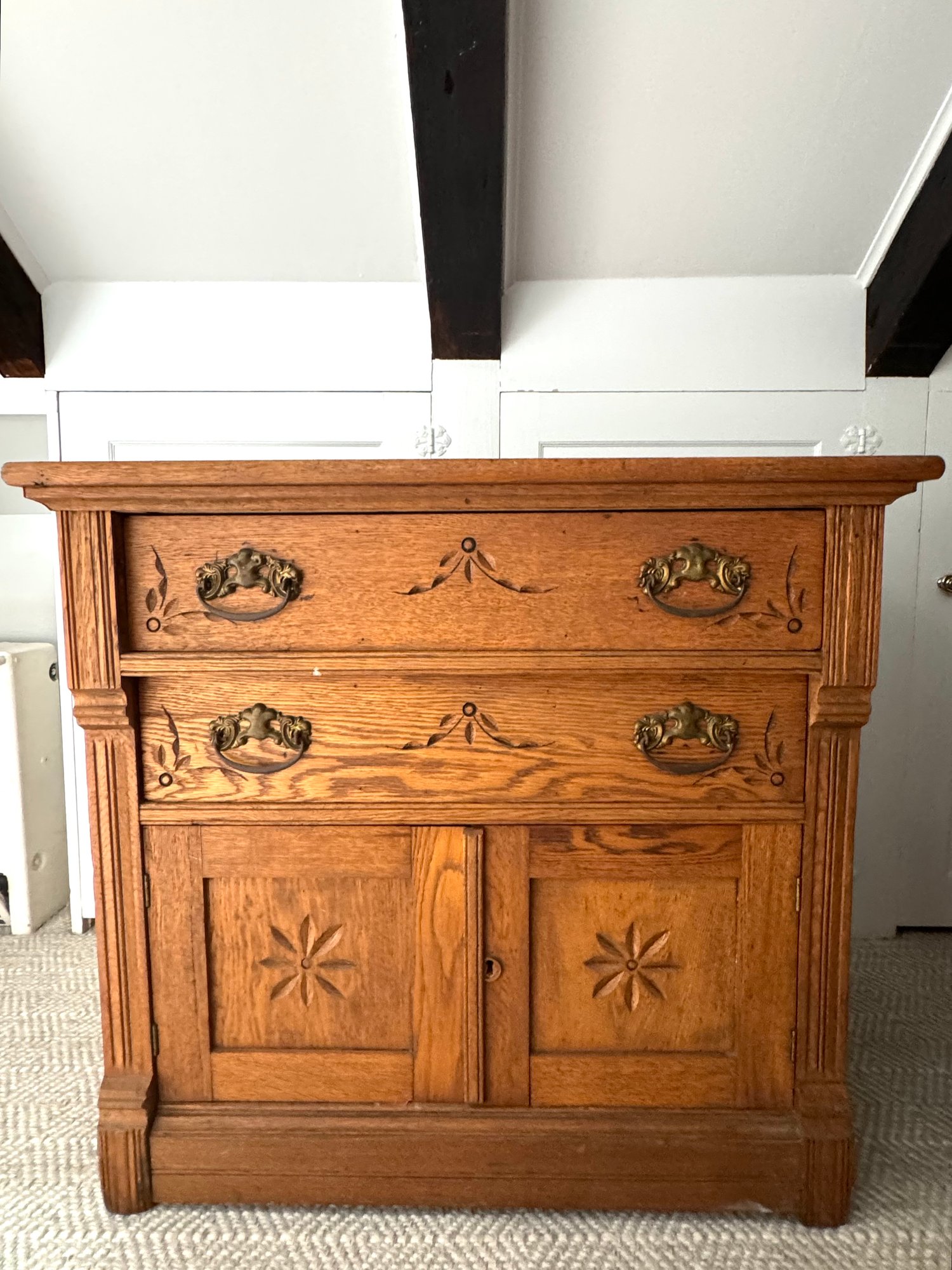 Oak wash stand cabinet. Lovely for a corner anywhere!