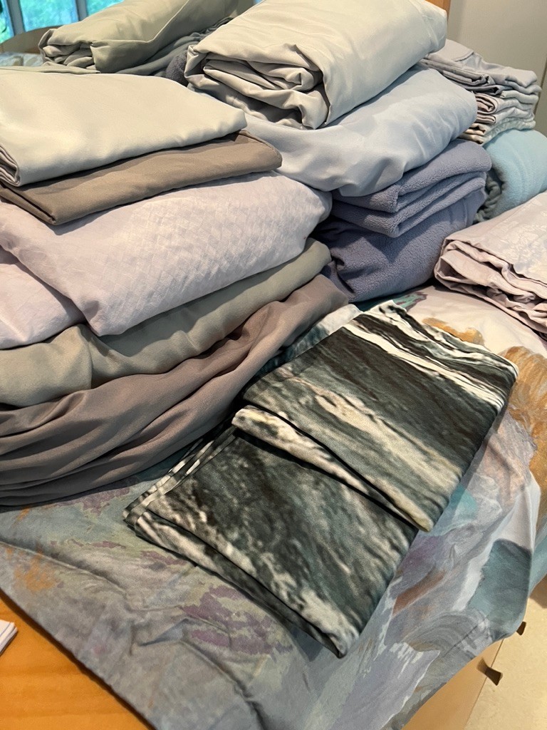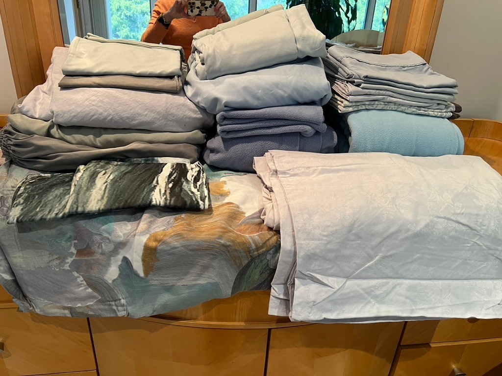 Oceans away with blue and gray linen and duvet covers, sheets pillow cases, and more, Queen sized,
