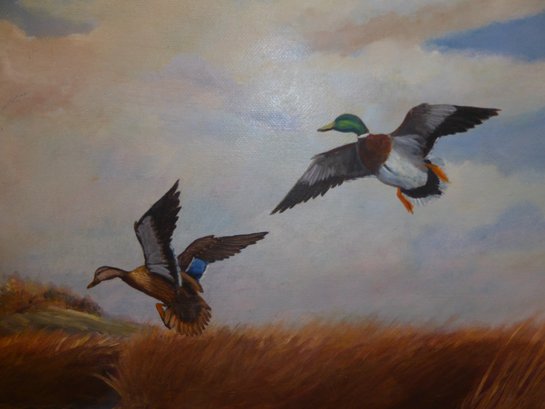 Oil On Canvas Ducks In Flight