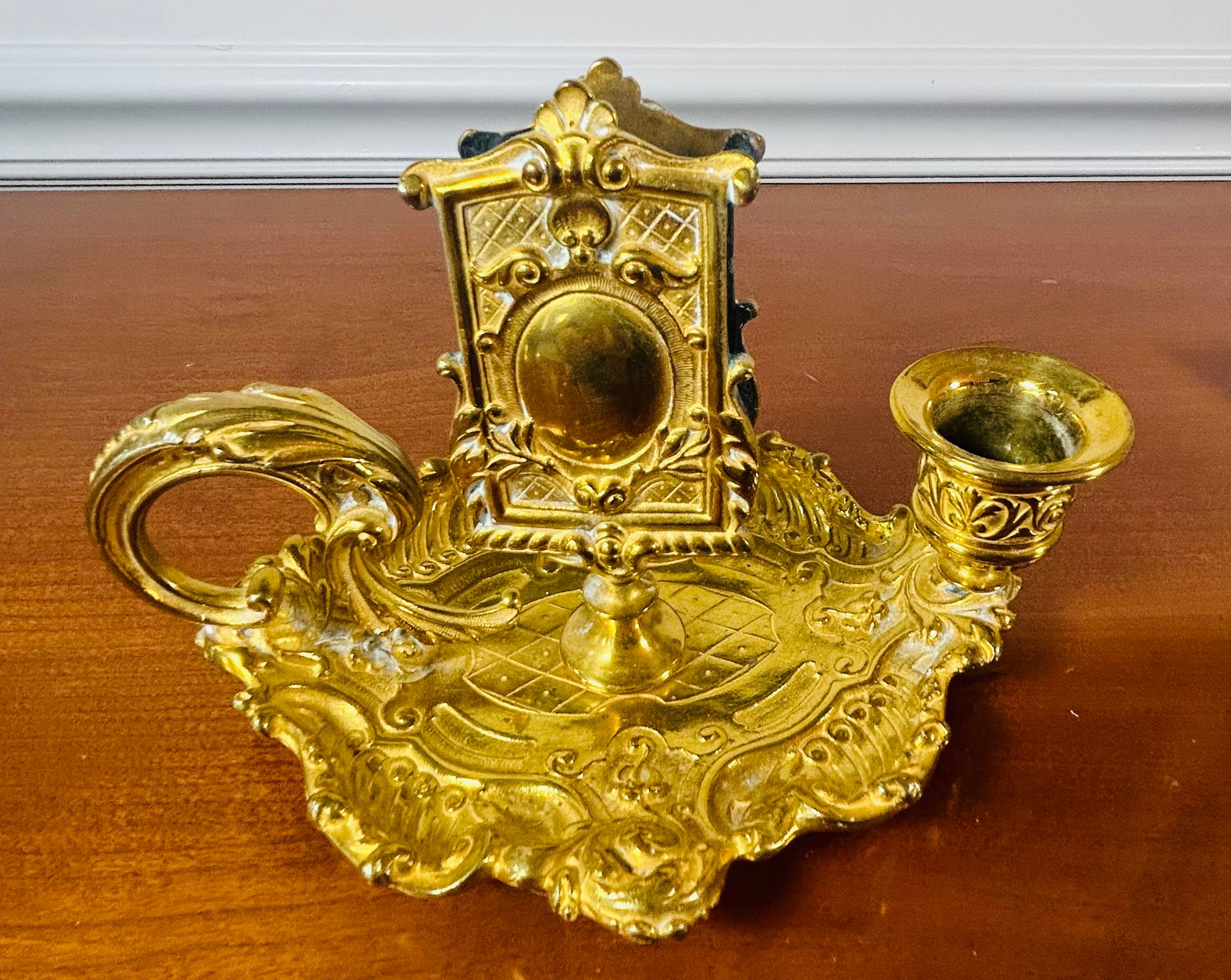 Gold Toned Candlestick With Match Holder 7" Length