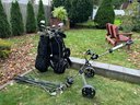 A collection of golf clubs and a golf bag cart. Note, there were stored in a dry shed but they need a good dusting. Scroll through photos for all the great clubs.