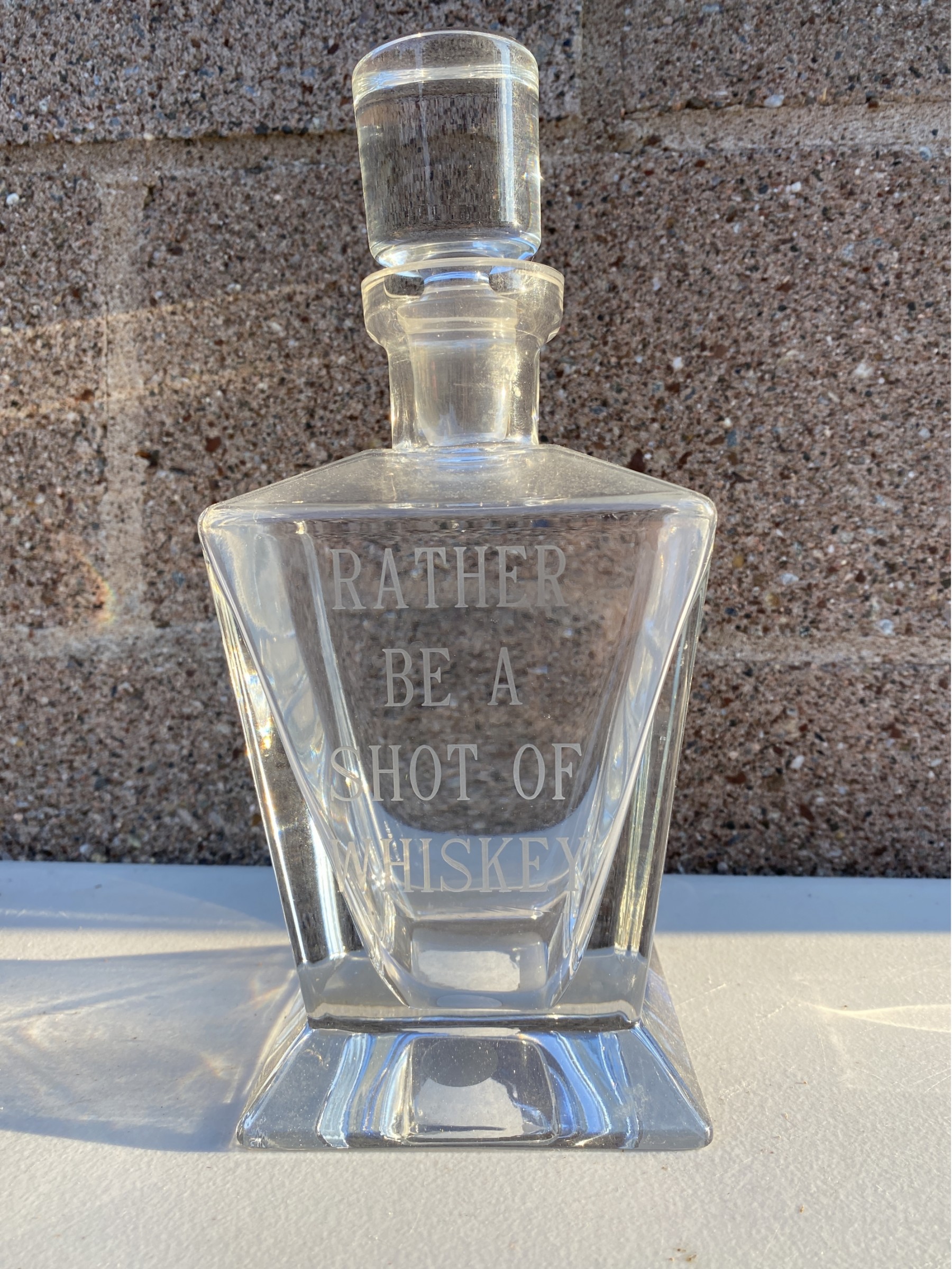Etched with "Rather Be A Shot of Whiskey" Very nice crystal decanter ready to serve its new owner.