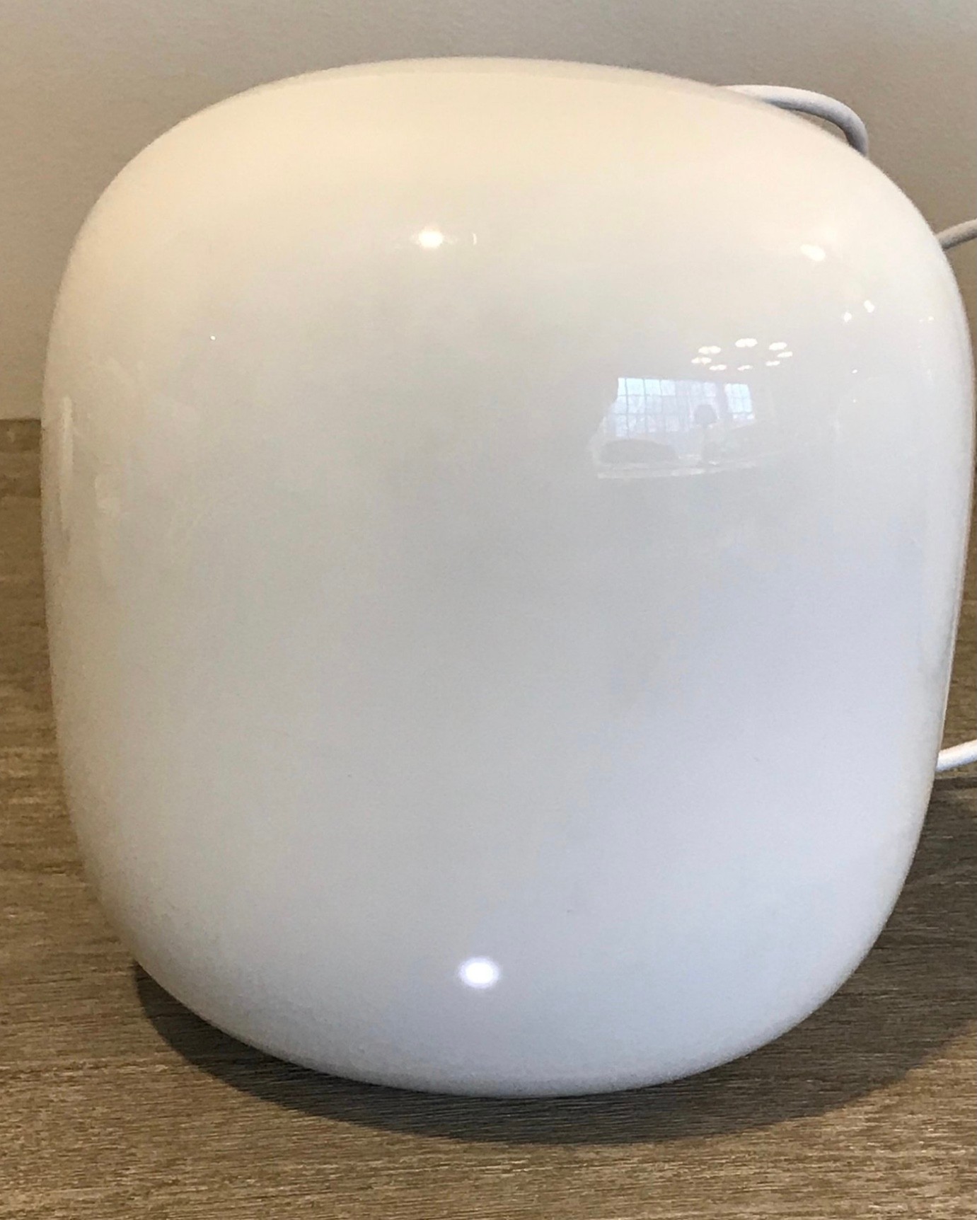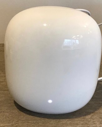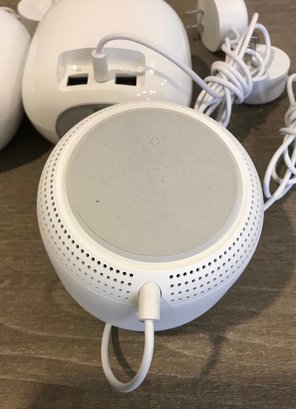 1 Nest Wifi Point (Model: H2E): This "matte finish" unit acts as a mesh extender and includes a built-in smart speaker with Google Assistant. It features a physical microphone mute switch for privacy.