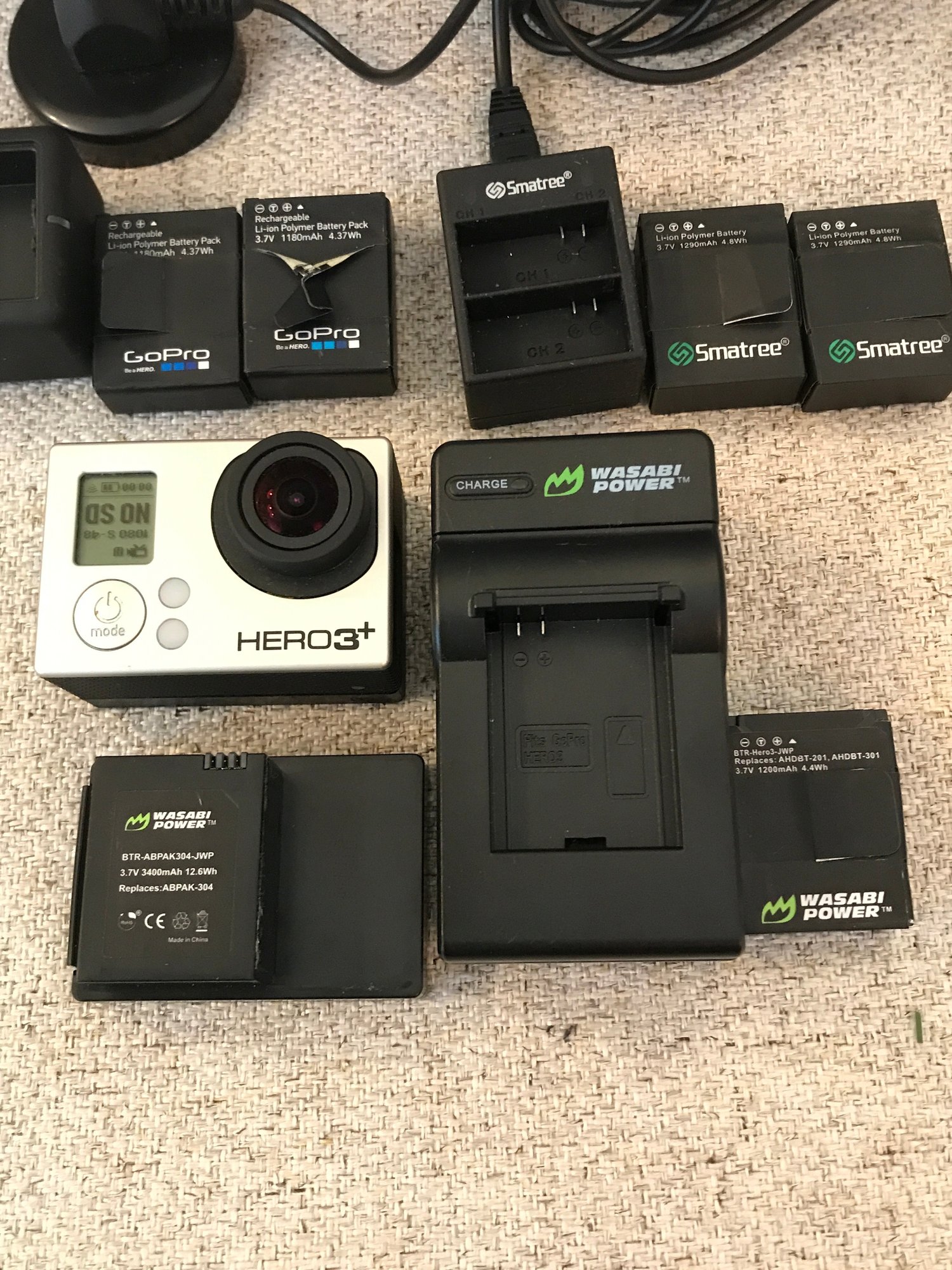 (7) Total batteries (Mix of GoPro OEM, Smatree, and Wasabi Power).