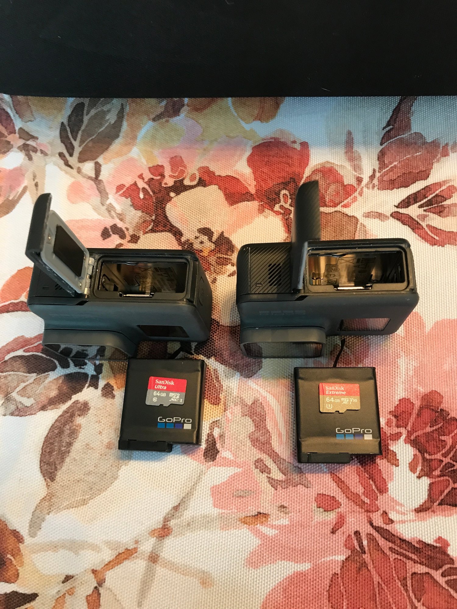 2x GoPro HERO6 Black Cameras: Features the GP1 chip for stunning 4K60 video, 12MP photos, and advanced video stabilization. Both are waterproof up to 33ft (10m) without a housing.