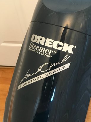 Oreck XL Steamer Signature Series upright carpet cleaner (Model XLS4652-1). This lightweight, professional-grade unit features the David Oreck signature branding and is designed for deep cleaning carpets and upholstery.