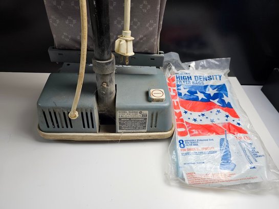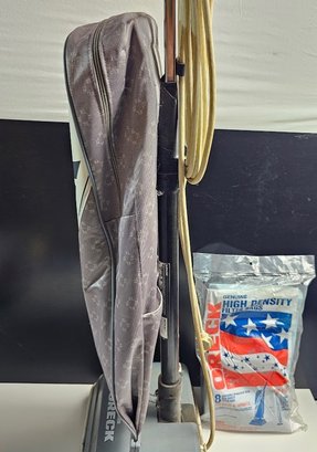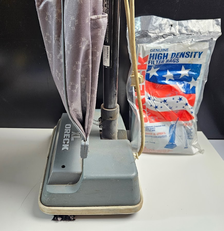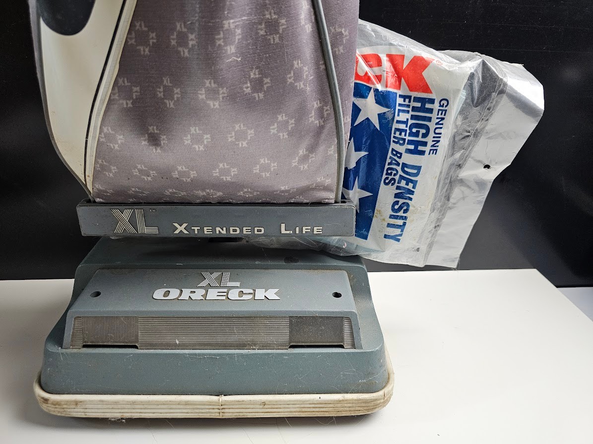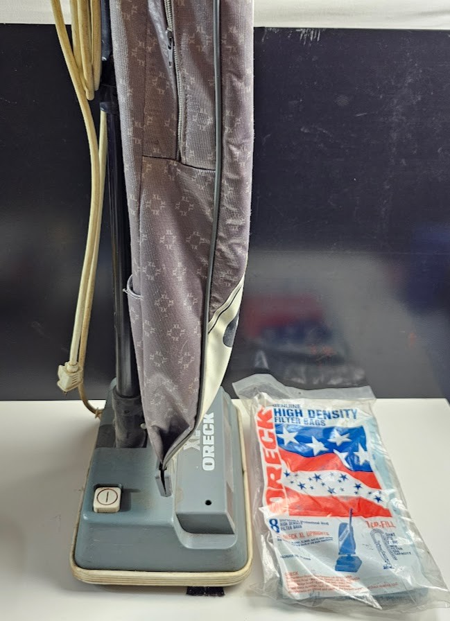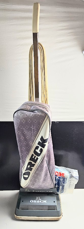 Oreck XL upright vacuum cleaner - tested briefly, turns on and vacuums in light testing.