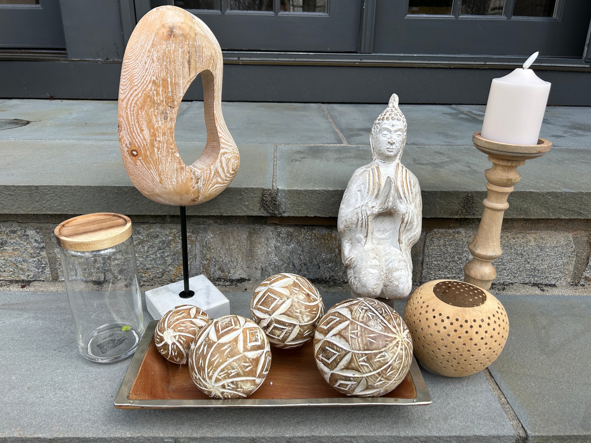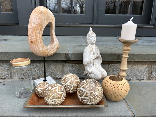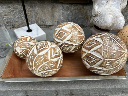 Wooden Tray 6.5" x 15". Wood Globule 17.5"