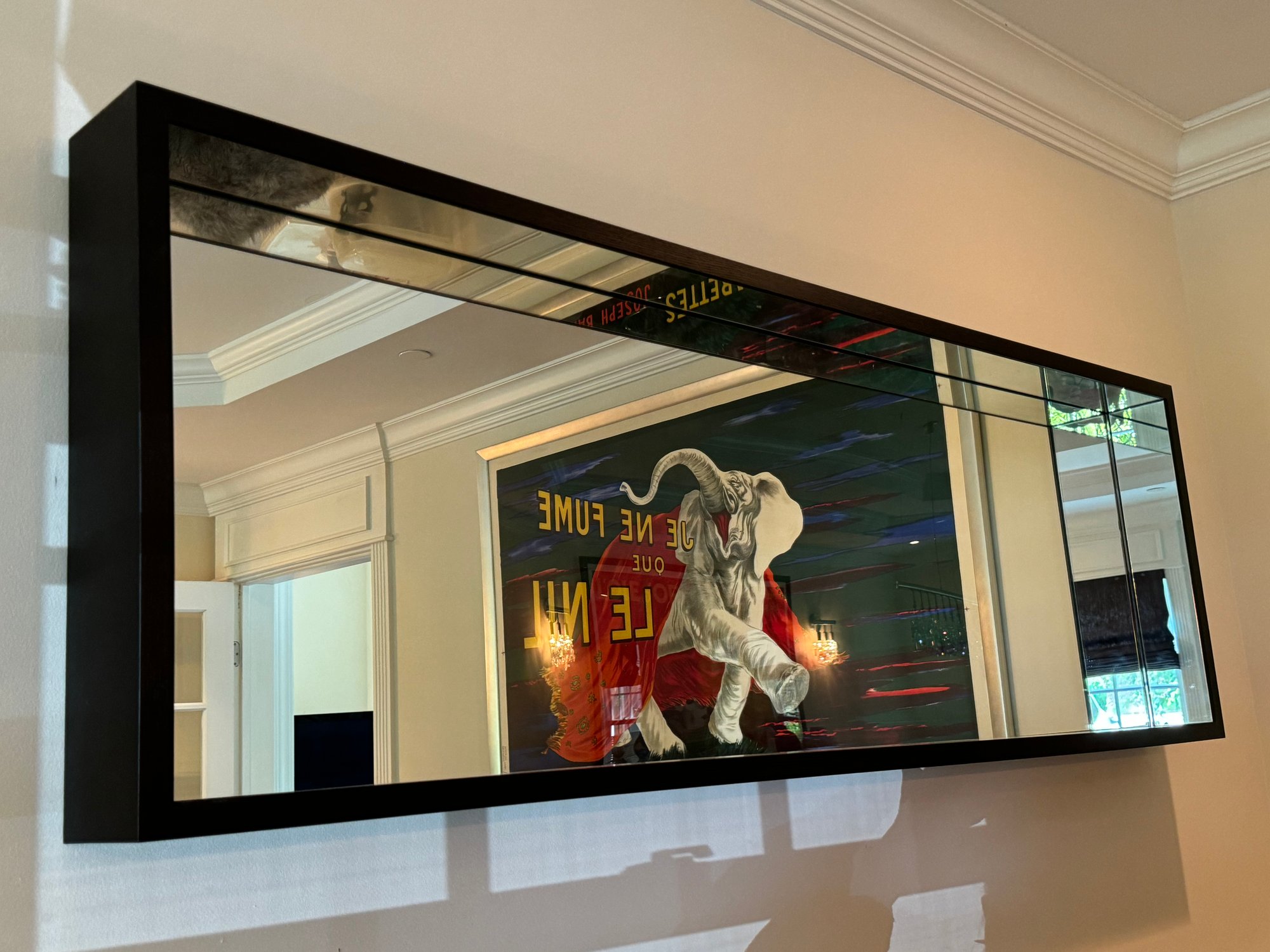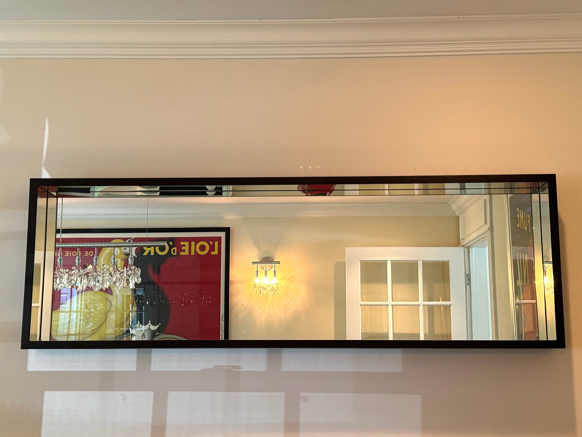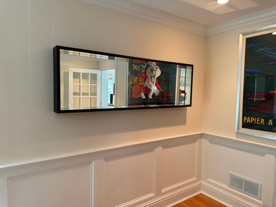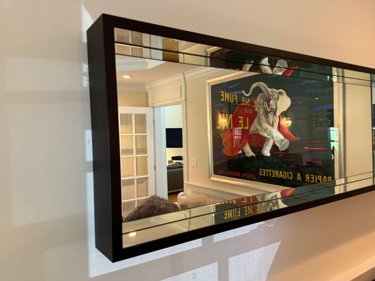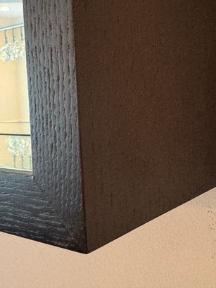 This very beautiful DWR mirror created an allusion of depth with its deep box styling and mirrored interior borders. Deep rich dark wood walnut finish.