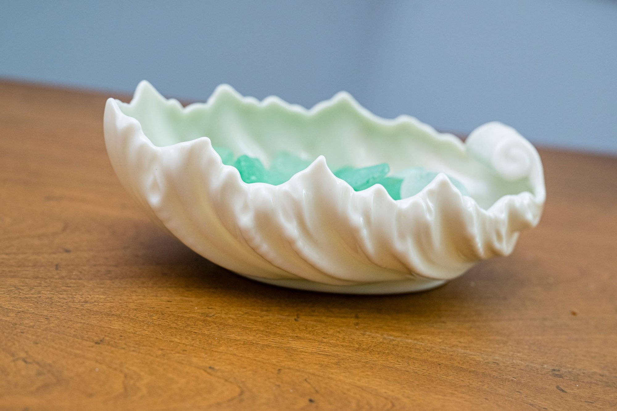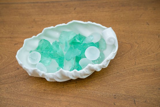 Serene decor piece with hand-picked sea glass.