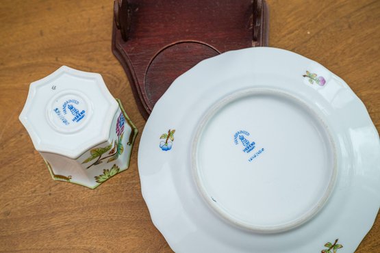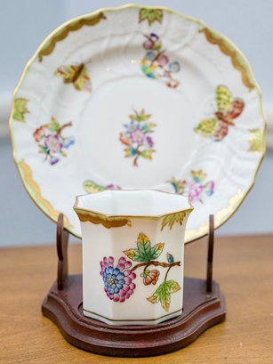 Octagon shaped cup with peony pattern and butterfly dish - Beautiful!