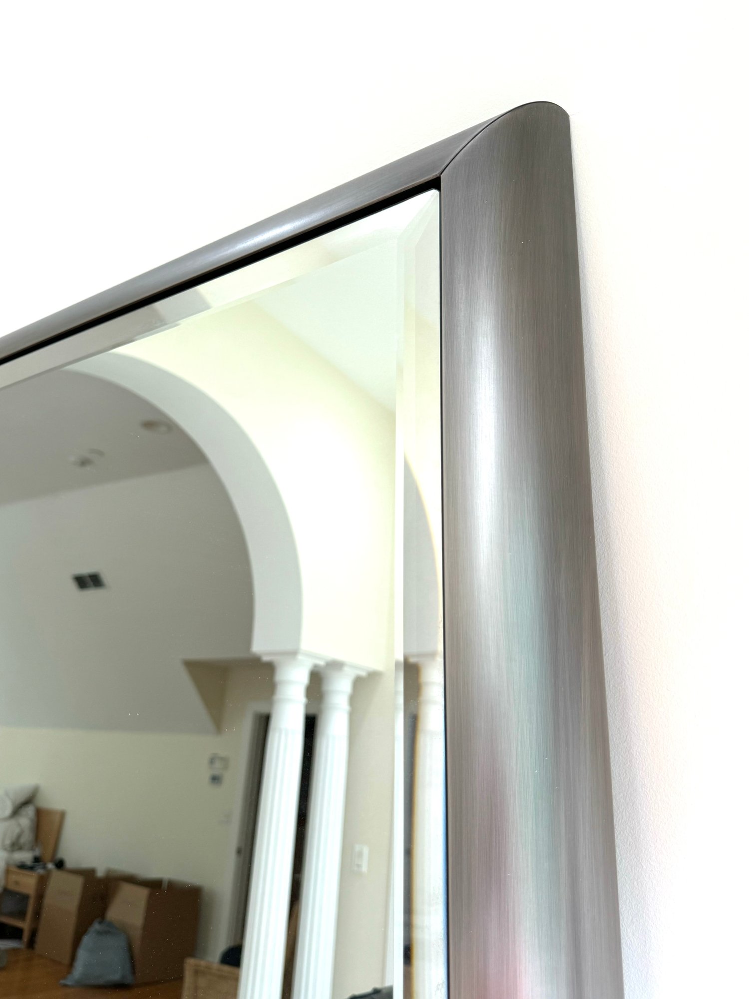 with a curved outer frame in a brushed silver finish. Condition is very nice.