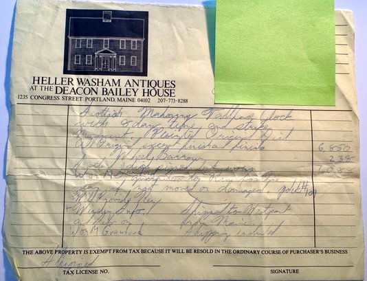 Purchased from Heller Washam Antiques of Portland, Maine original cost 7,088.
