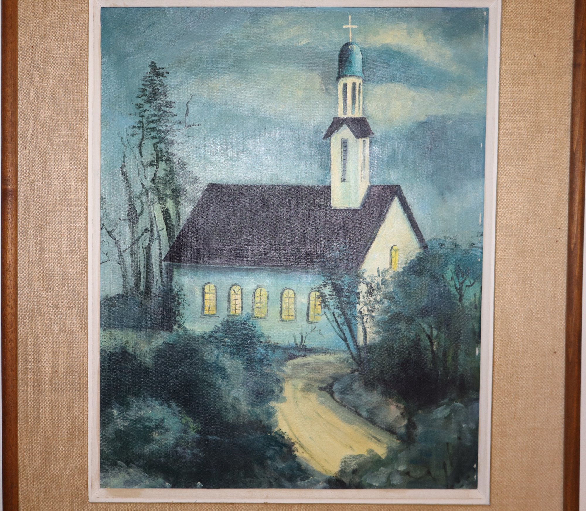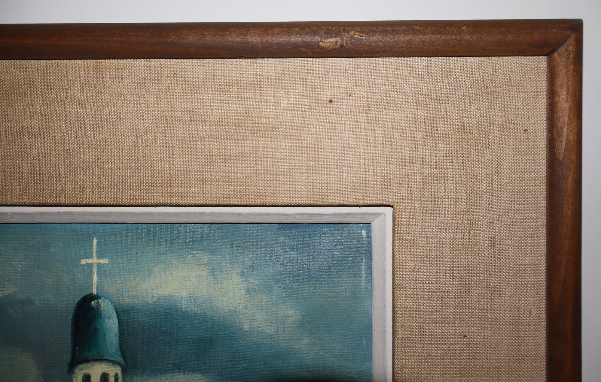 Custom frame features a linen border/mat