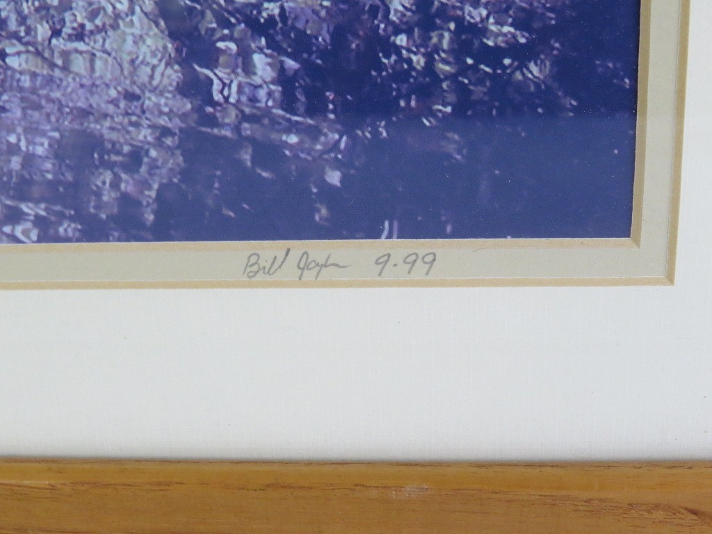 Framed "Shallow Reflecting Pool" is an original color photograph which is signed and dated (9/1999) by the photographer. Frame appears to be oak and measures 16" X 13". Ready to hang.