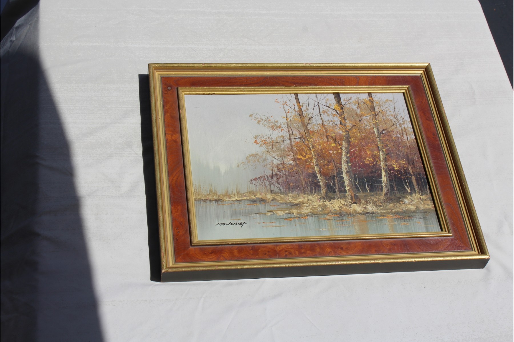 Great composition, the frame works wonderfully with this piece. Slight wear to frame. Framed 16 x 20", Visible 12 x 16"
