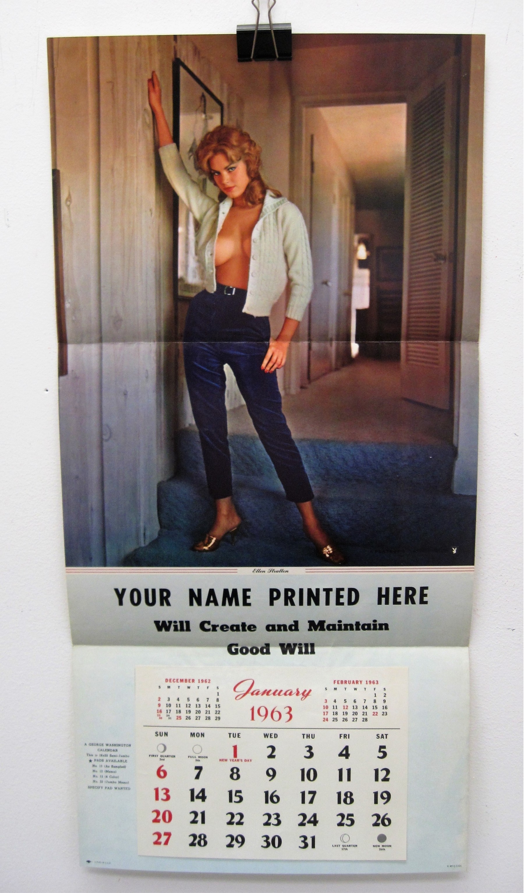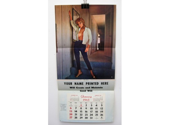Original Vintage 1963 Playboy Playmate Ellen Stratton Salesman Sample Pinup Litho Calendar