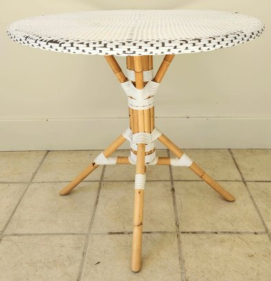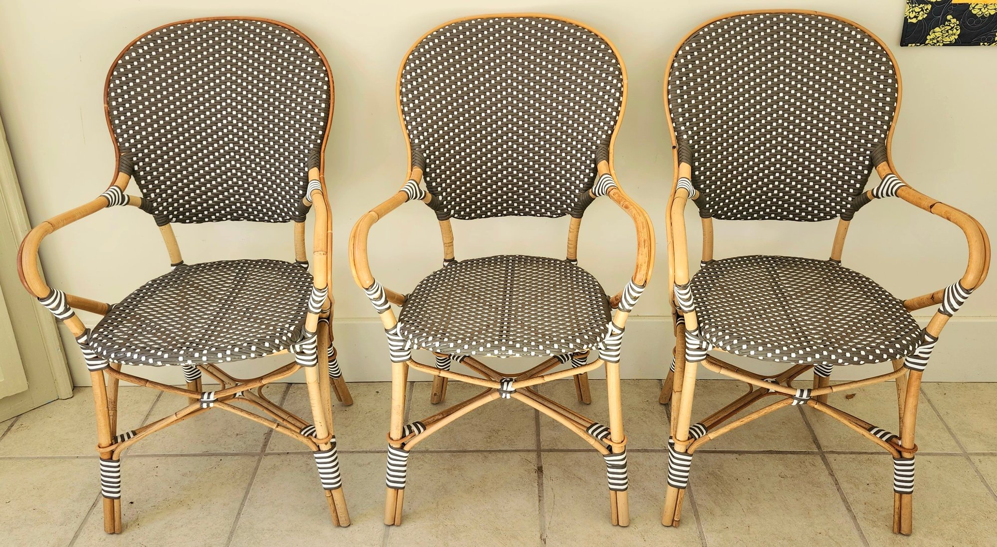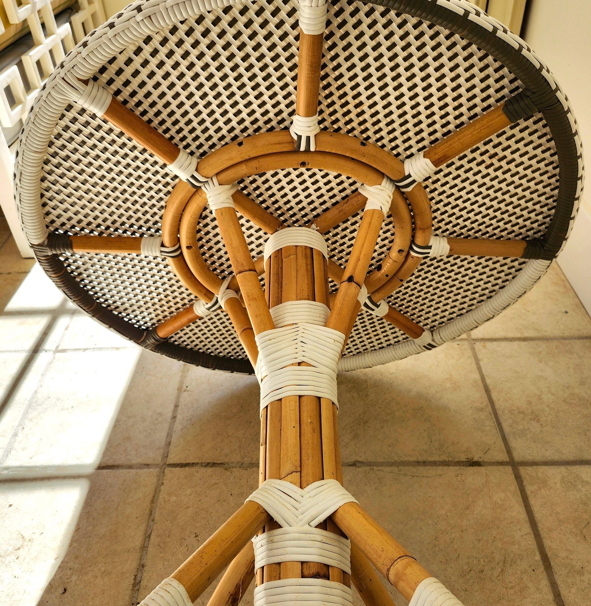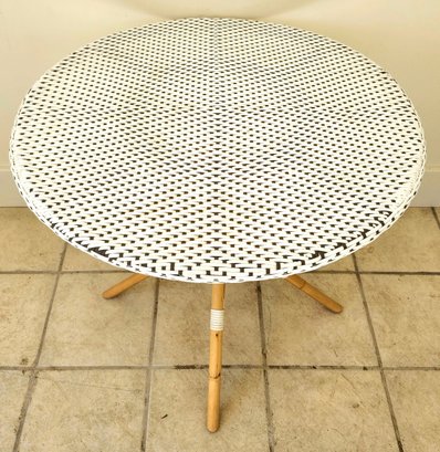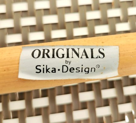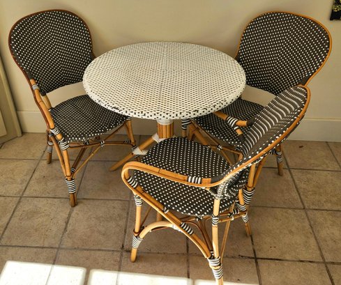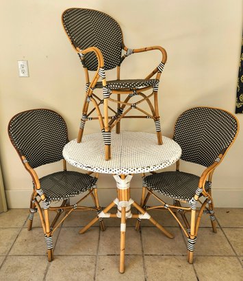 Bamboo woven vinyl patio table and three chairs set by Sika Design.