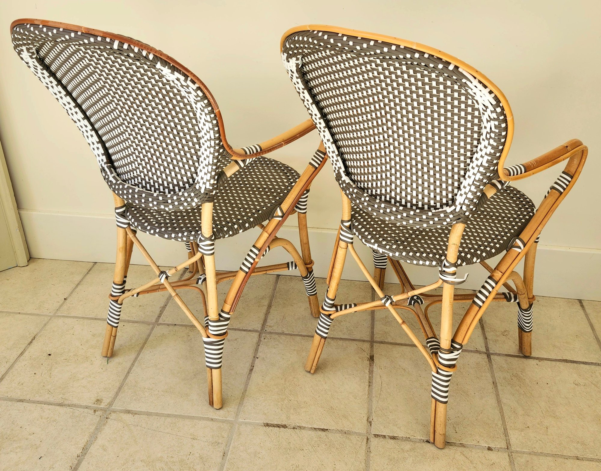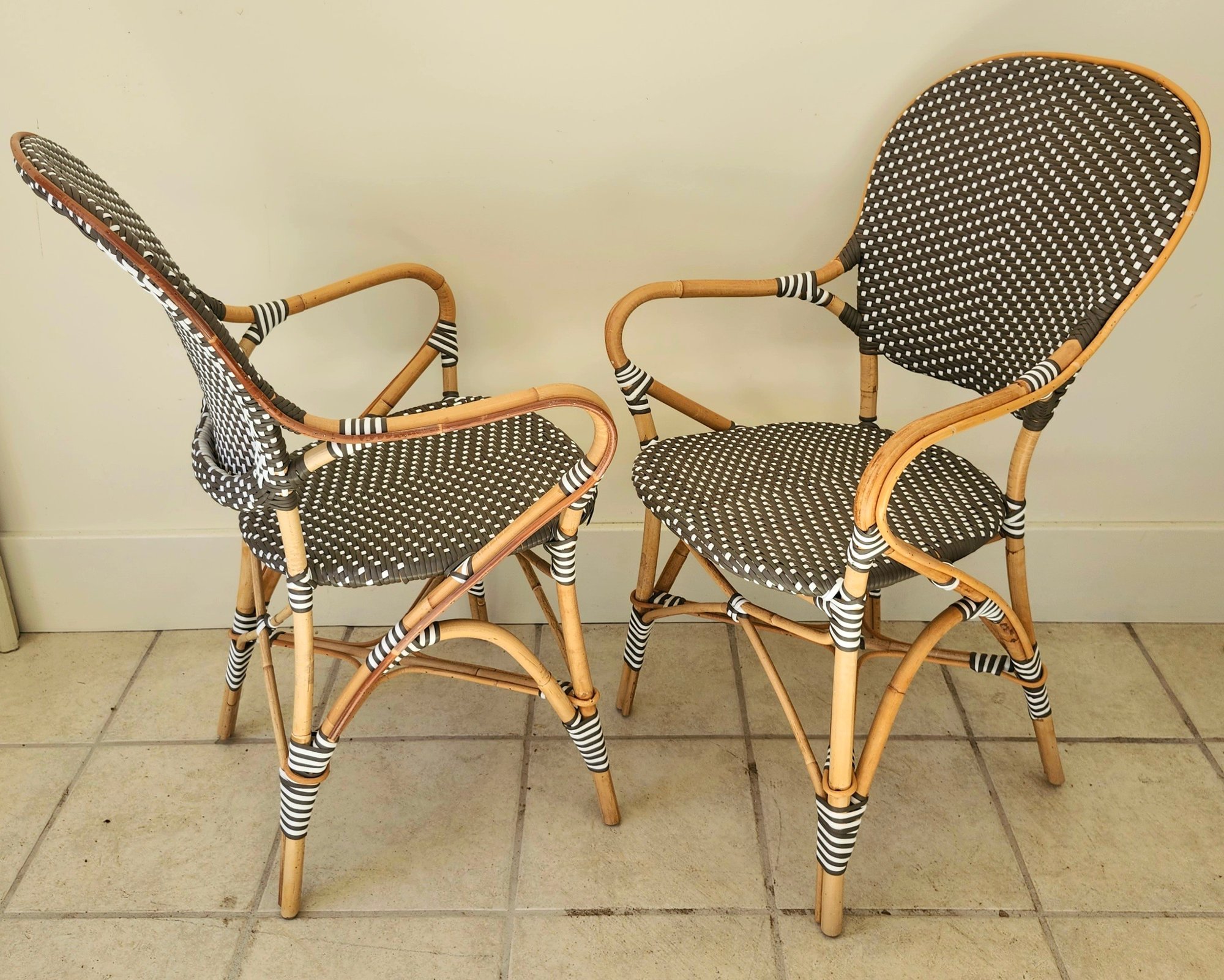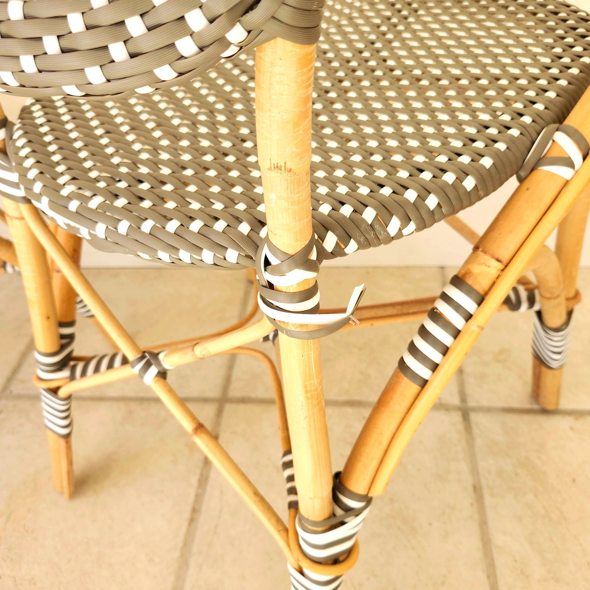 Bamboo woven vinyl patio table and three chairs set by Sika Design.
