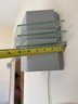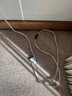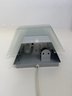Both are in good working order but one switch on one of the cords has but cut off and repaired. They both have a unique spacey design and measure approximately 9” tall x 11.5” wide.