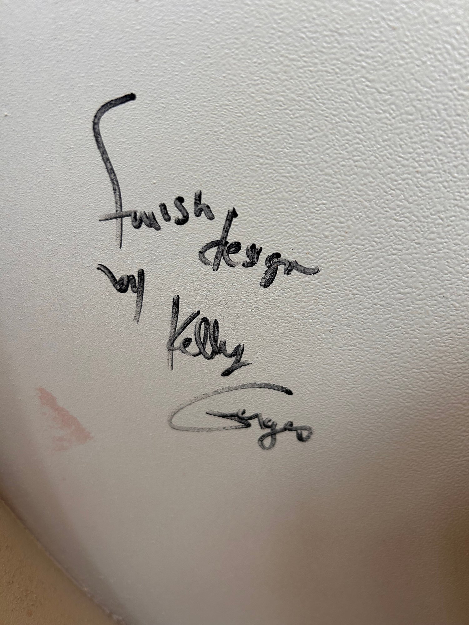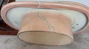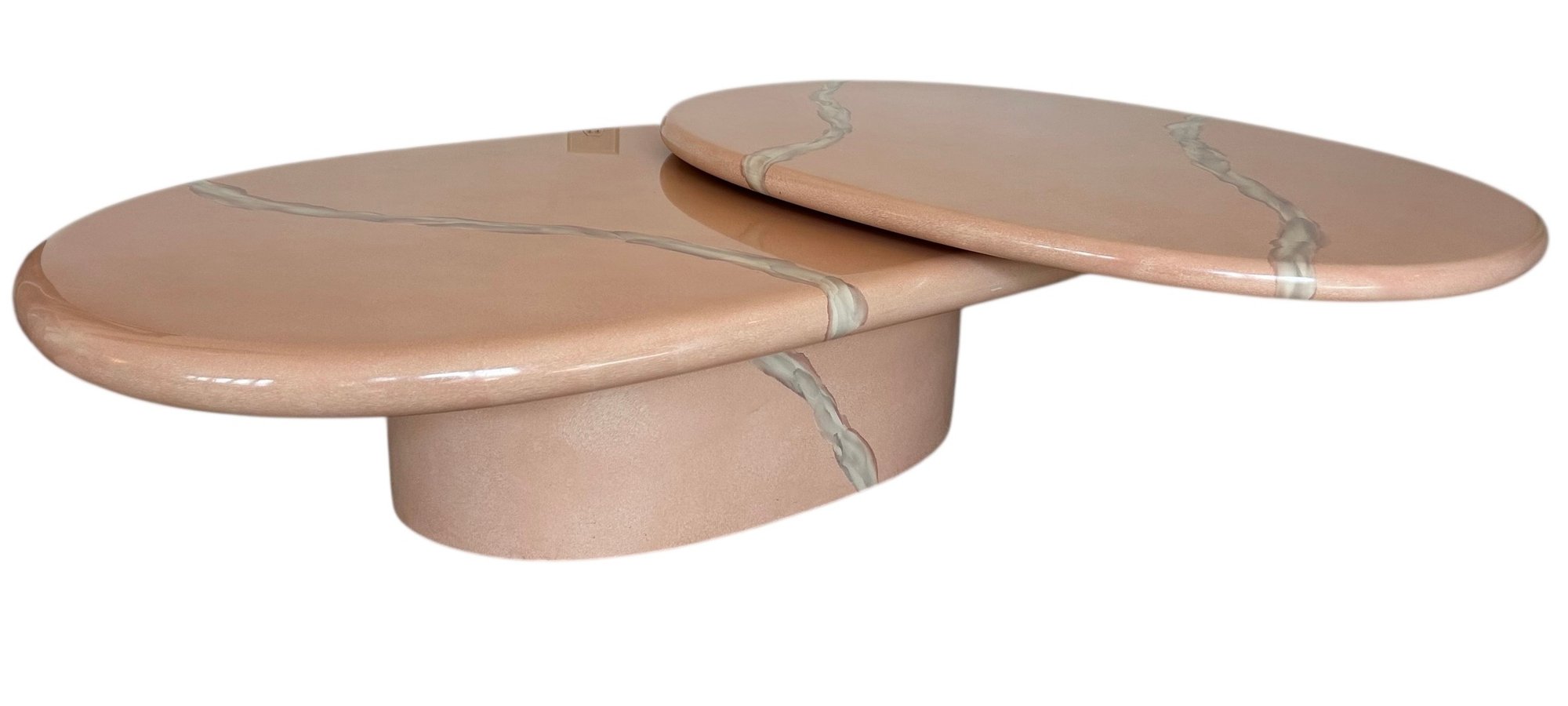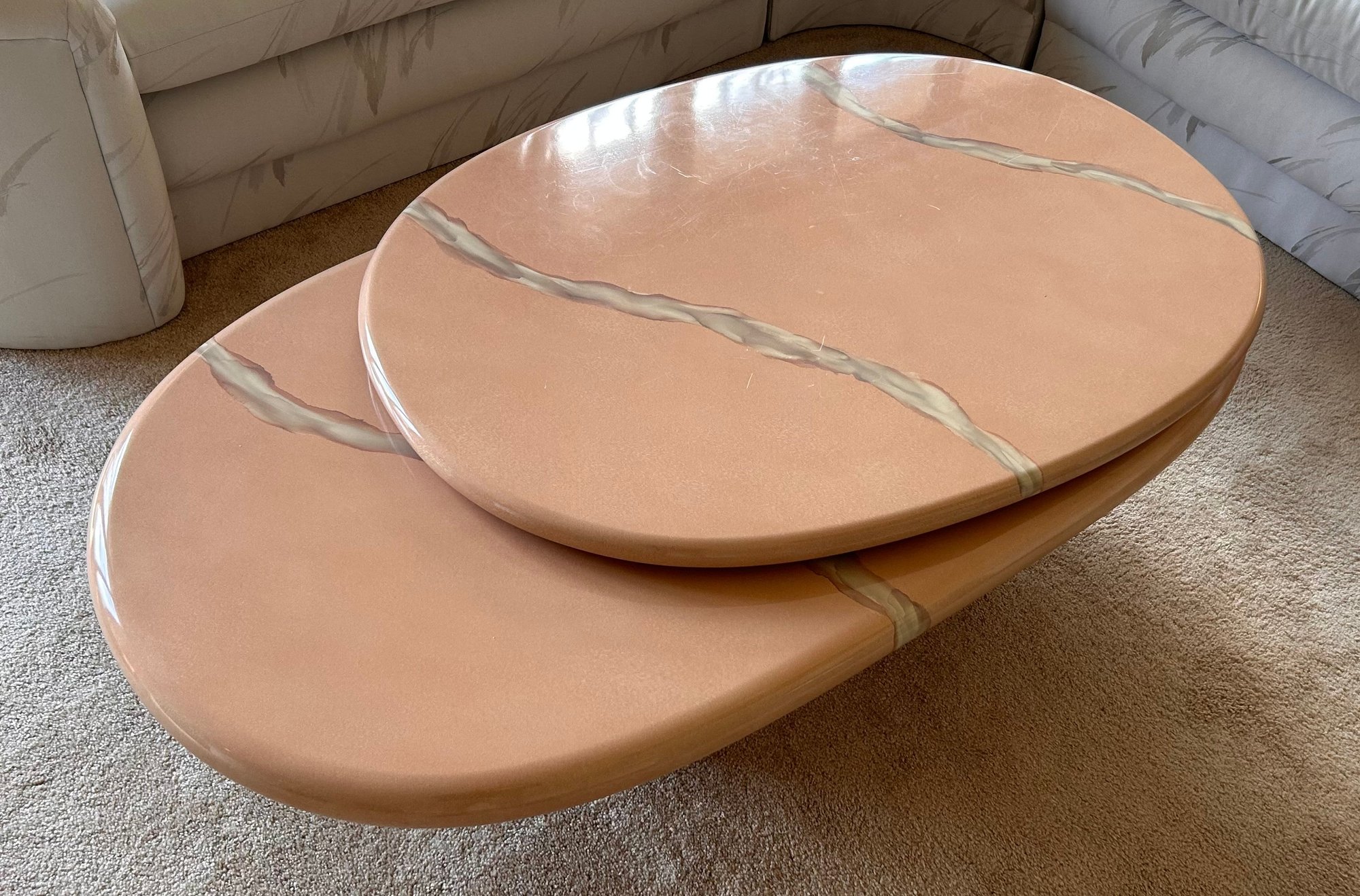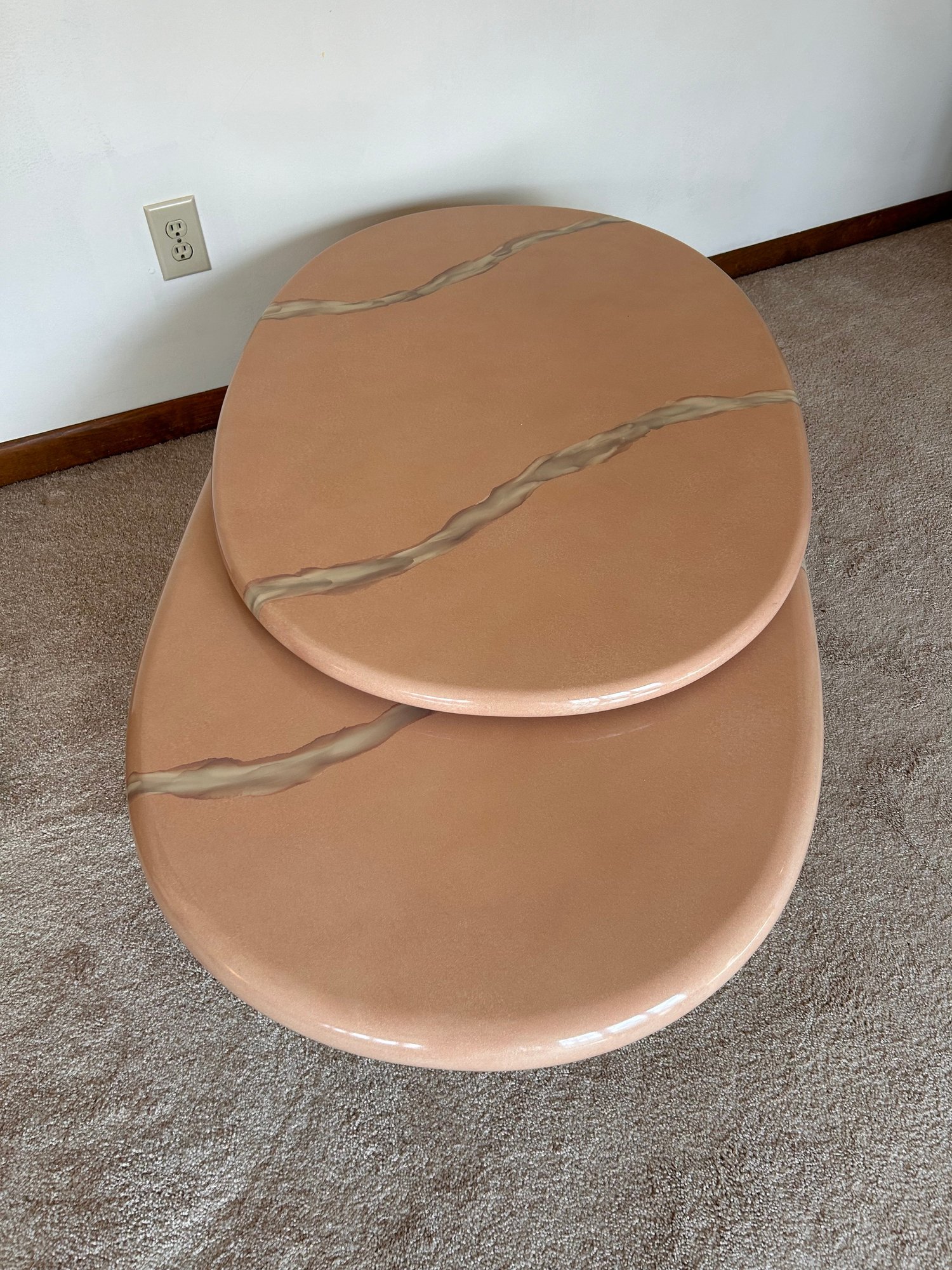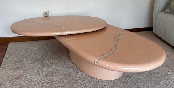 Finish design with hand written signature by Kelly G as shown in photos. This is a faux marble with a light pink tone. The top section has the ability to swivel 360 degrees as shown in photos. It measures approximately 15” tall, 30” deep with a total length of 69” when swiveled out fully or 54” when swiveled inward.
