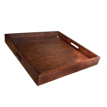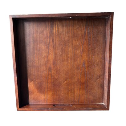 Pottery Barn solid wood serving tray with a warm, rich finish and clean rectangular form. Features integrated cutout side handles and raised edges, making it easy to carry while keeping drinks, dishes, or decor neatly contained. A versatile piece that works just as well for serving as it does for coffee table styling, barware organization, or kitchen counter display.
