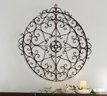 Black Iron with a rustic bronze finish, key hole back for mounting on wall- No issues.