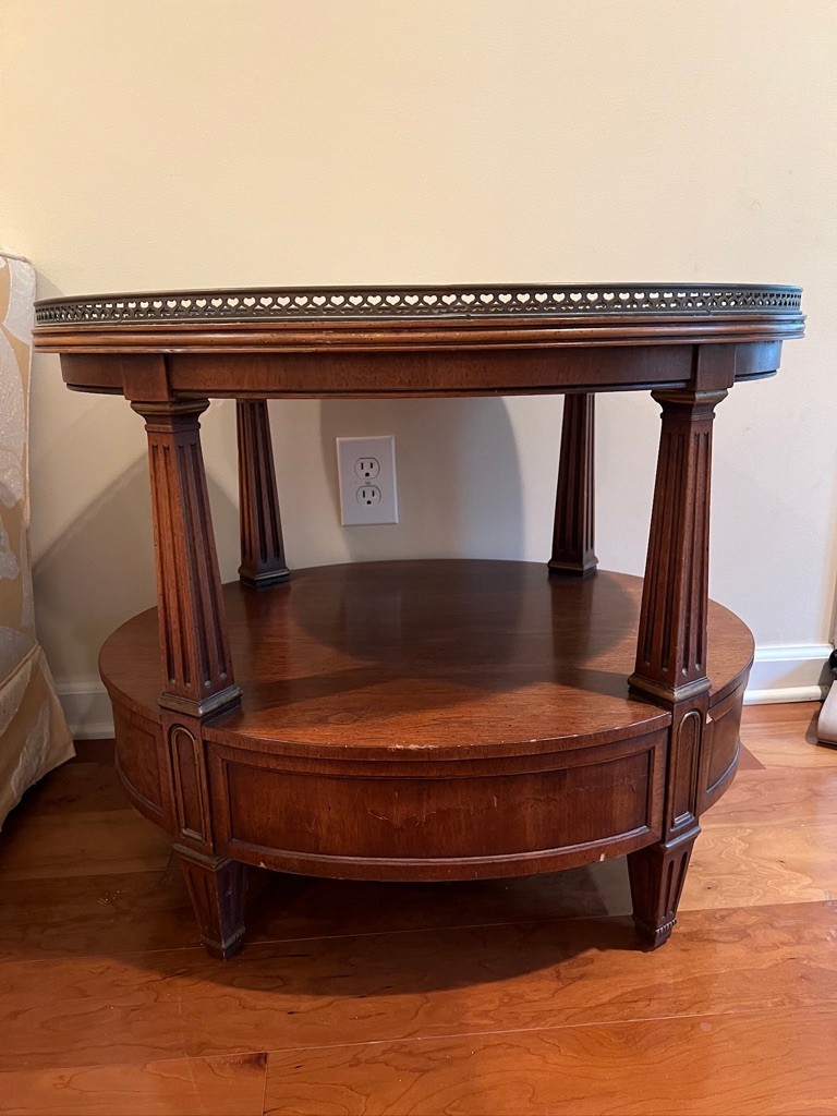 oval end table, glass top, 2 tier, mahogany, nice condition