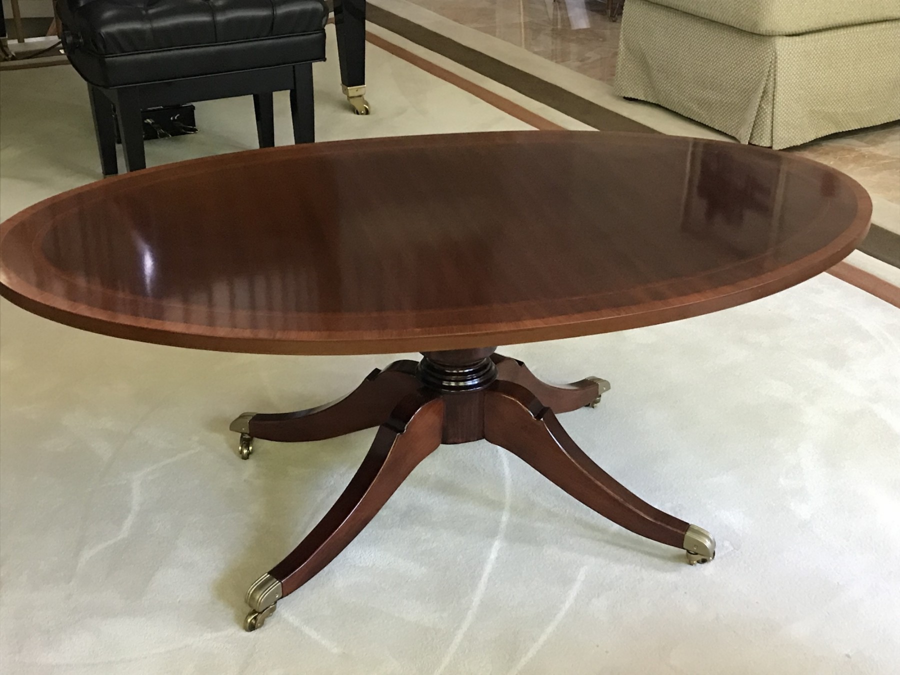 oval shaped mahogany coffee table on casters
