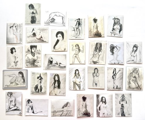 Over 25 Miniature ACEOs Nude Original Lack And White Drawings & Prints
