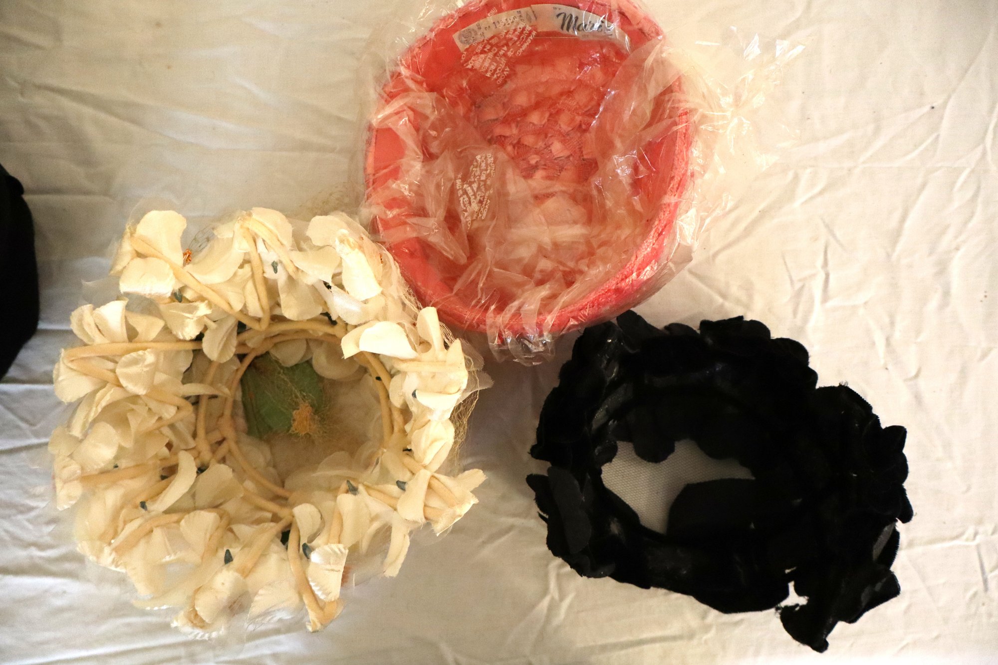 You'll find cloche hats, Italian made fedora, fascinators, sports/cycling caps & a blue set of gloves with scarf & hat