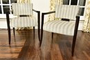 Dining/guest chair with delicately tapered legs and flared armrests. Tight upholstered seat and backrest.