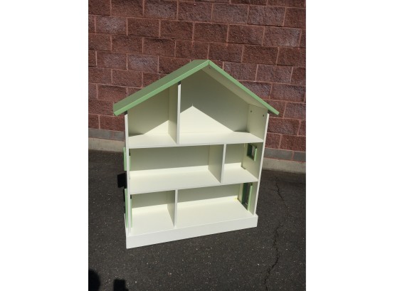 Pottery barn bookshelf that looks like a doll house, the design is retired. Its nice and clean, and very sturdy. Has some weight to it, not some cheap ikea bookshelf. It measures 45x51x12". Does have a few scratches and nicks, but nothing major.