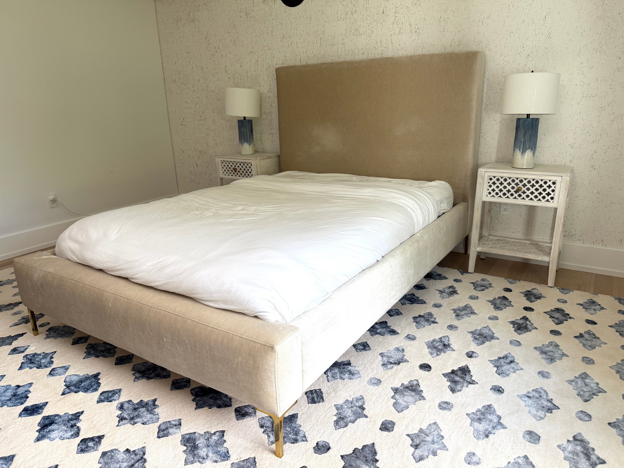 Champagne color. Some light wear to one rail and headboard. Presents well overall.