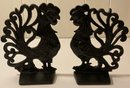 Pair of Cast Iron Black Rooster Bookends.