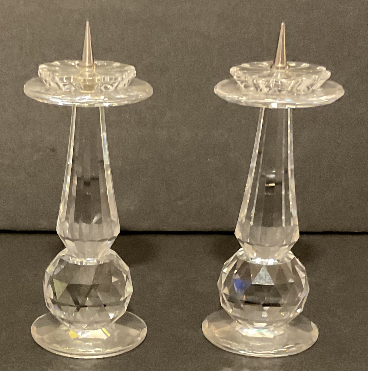 Pair Swarovski Crystal Candlesticks, Pin Style.