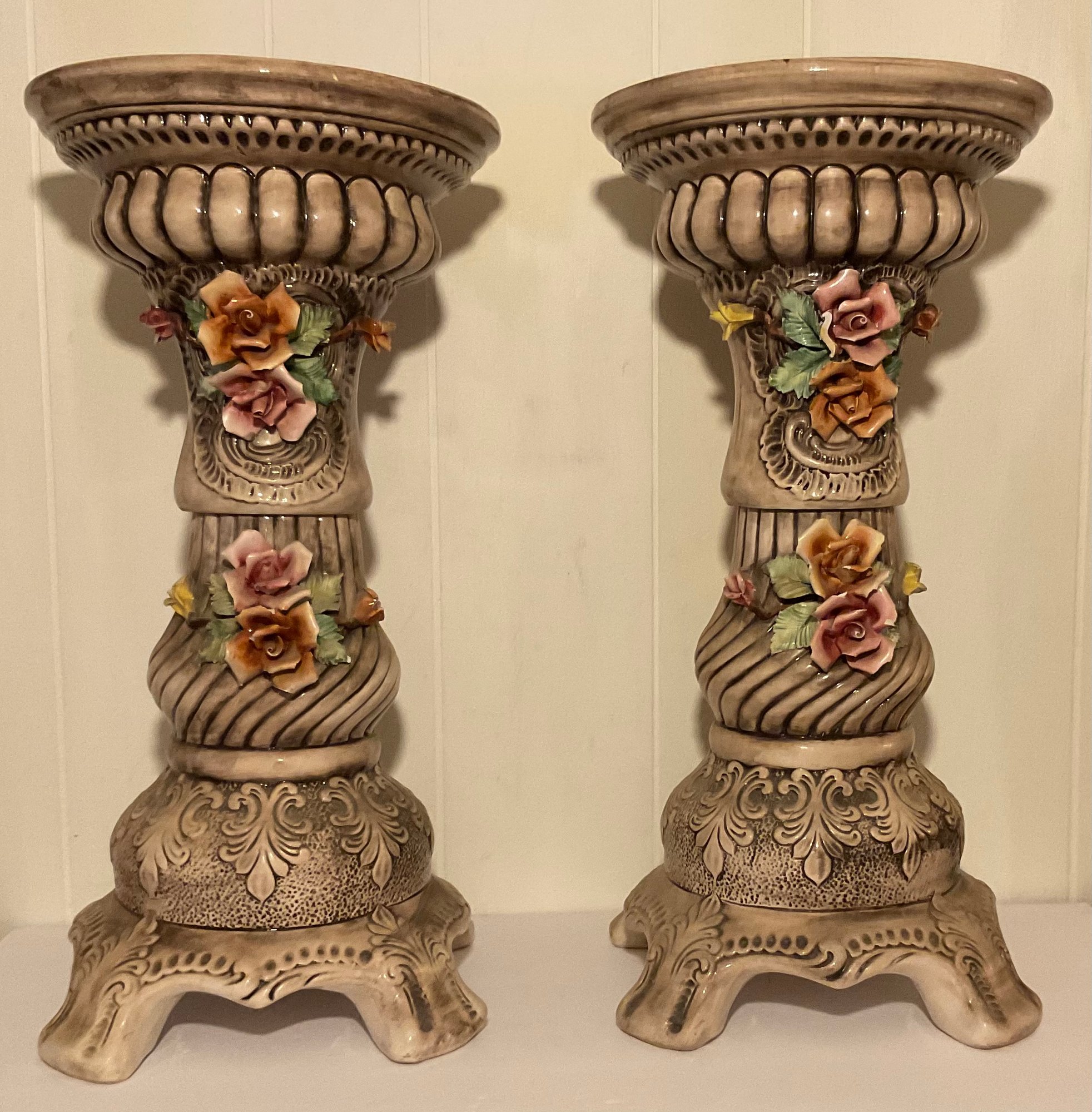 Pair Vintage Capodimonte Ceramic Pedestals.