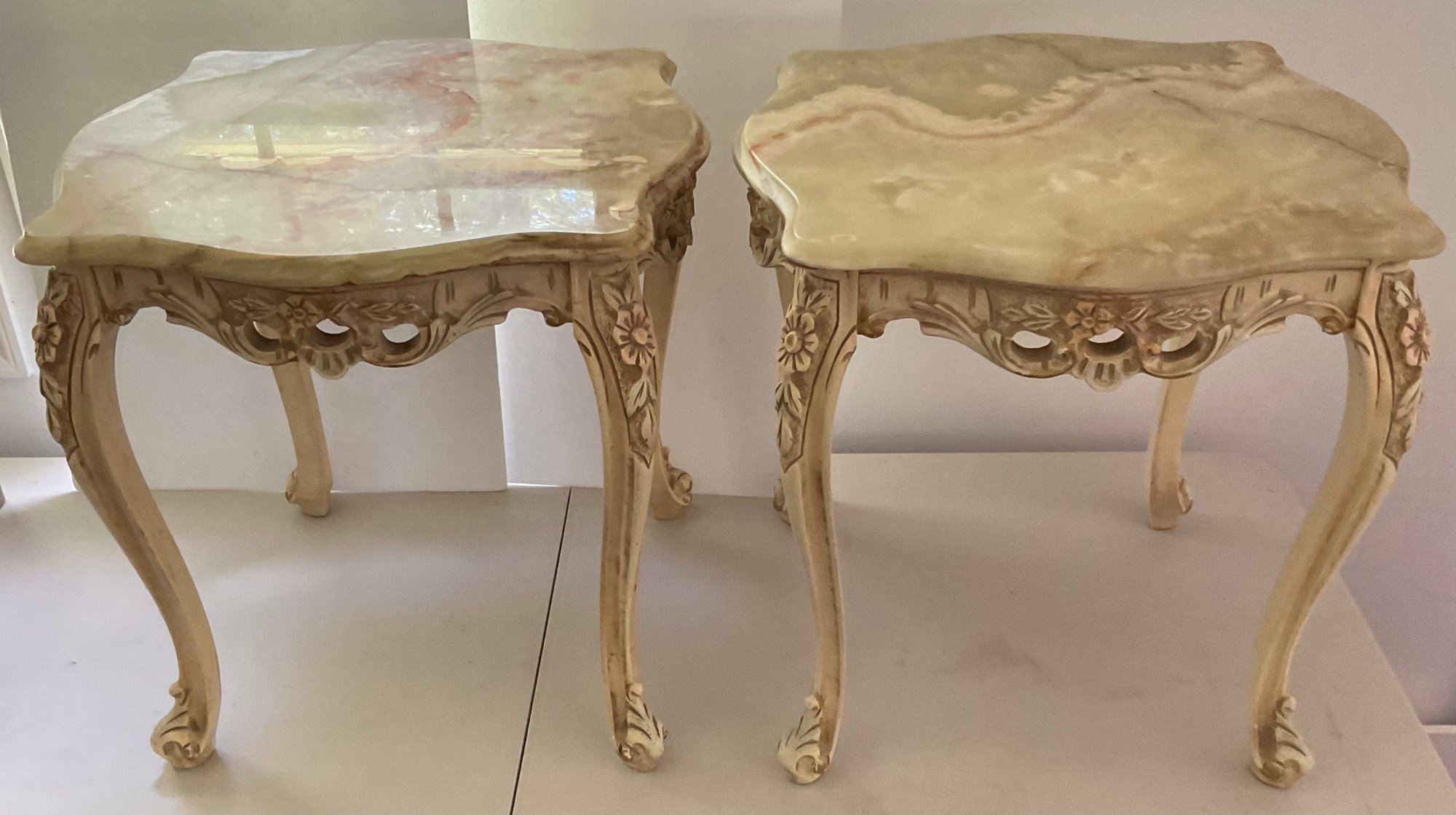 Hand Carved Wood Flowers on Drop Design & Aprons in Pastel Coloring.
