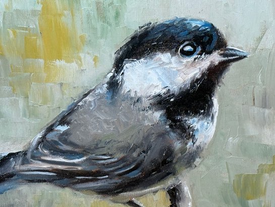 RA Rose black capped chickadee Songbird Signed Original Oil Painting