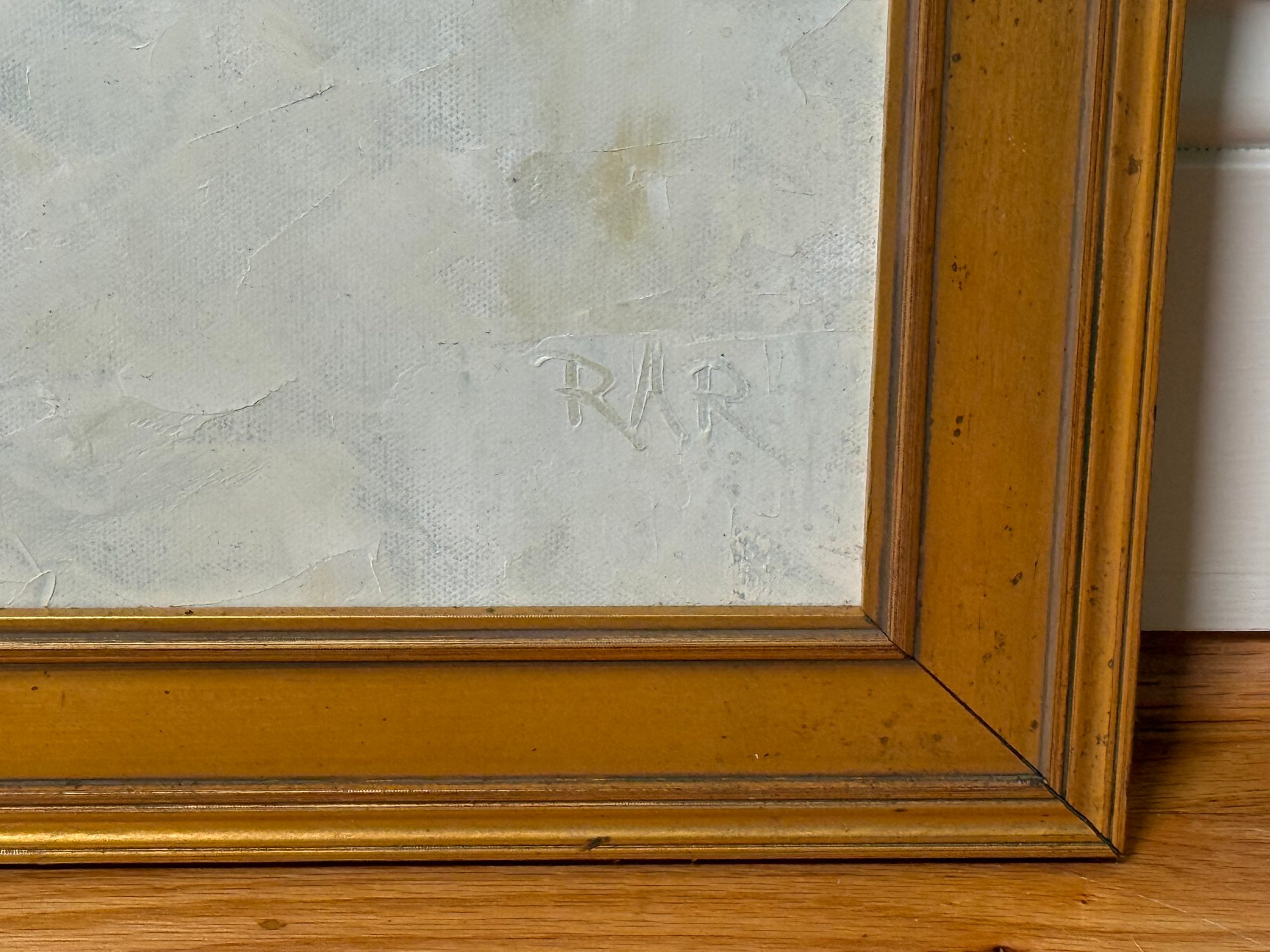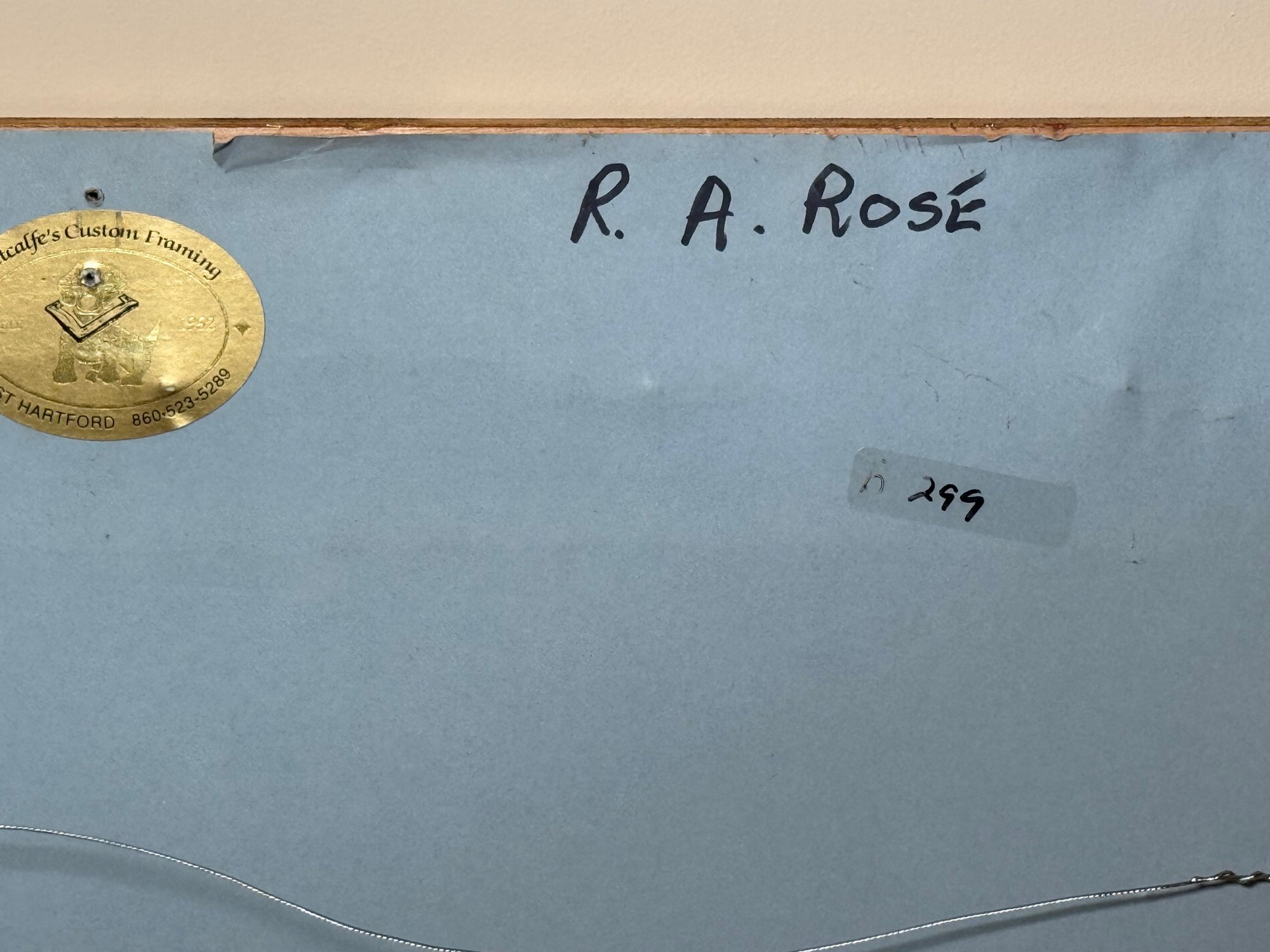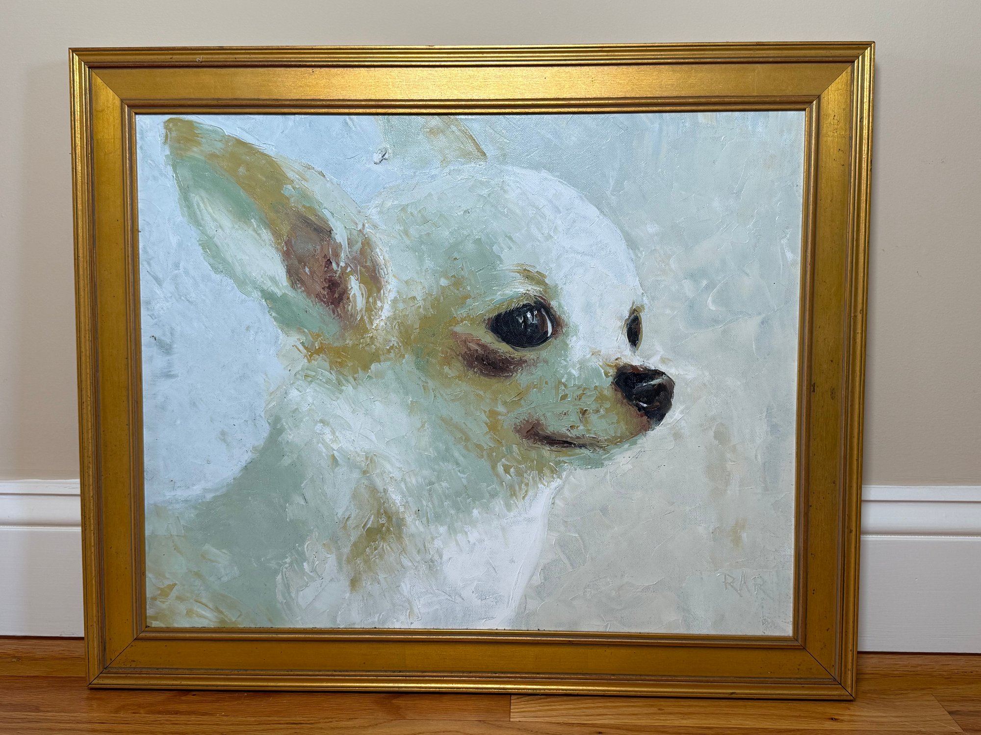 This is a great original painting of a chihuahua by RA Rose. Signed in the lower right hand corner. Pretty gold painted frame.