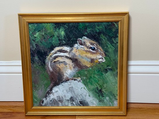 RA Rose Chipmunk Signed Original Oil Painting