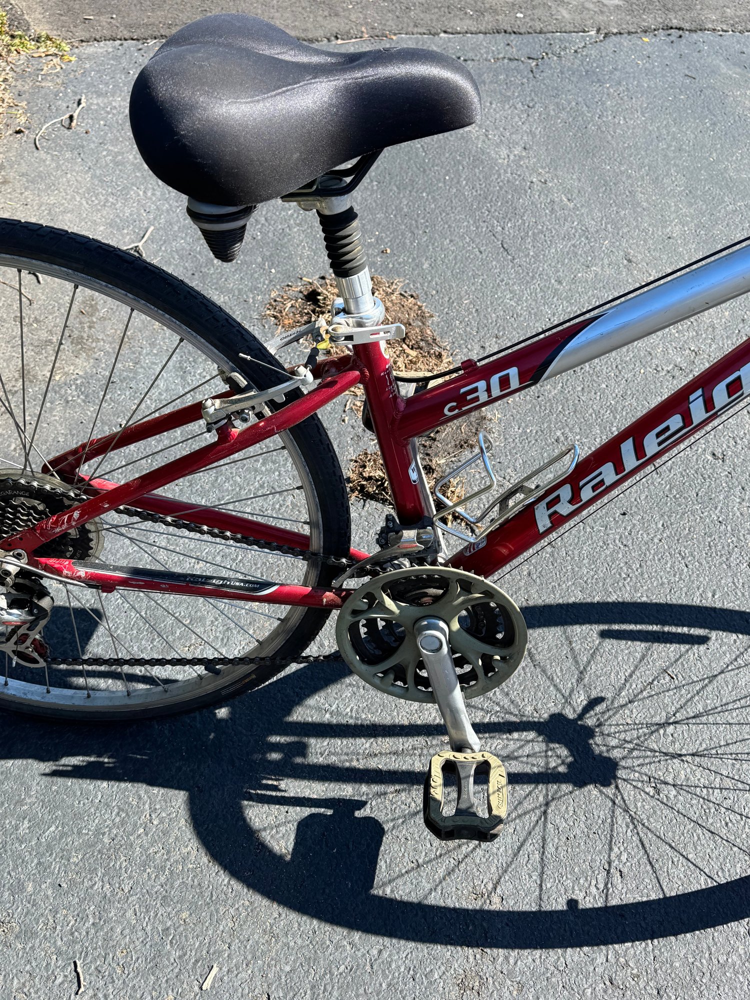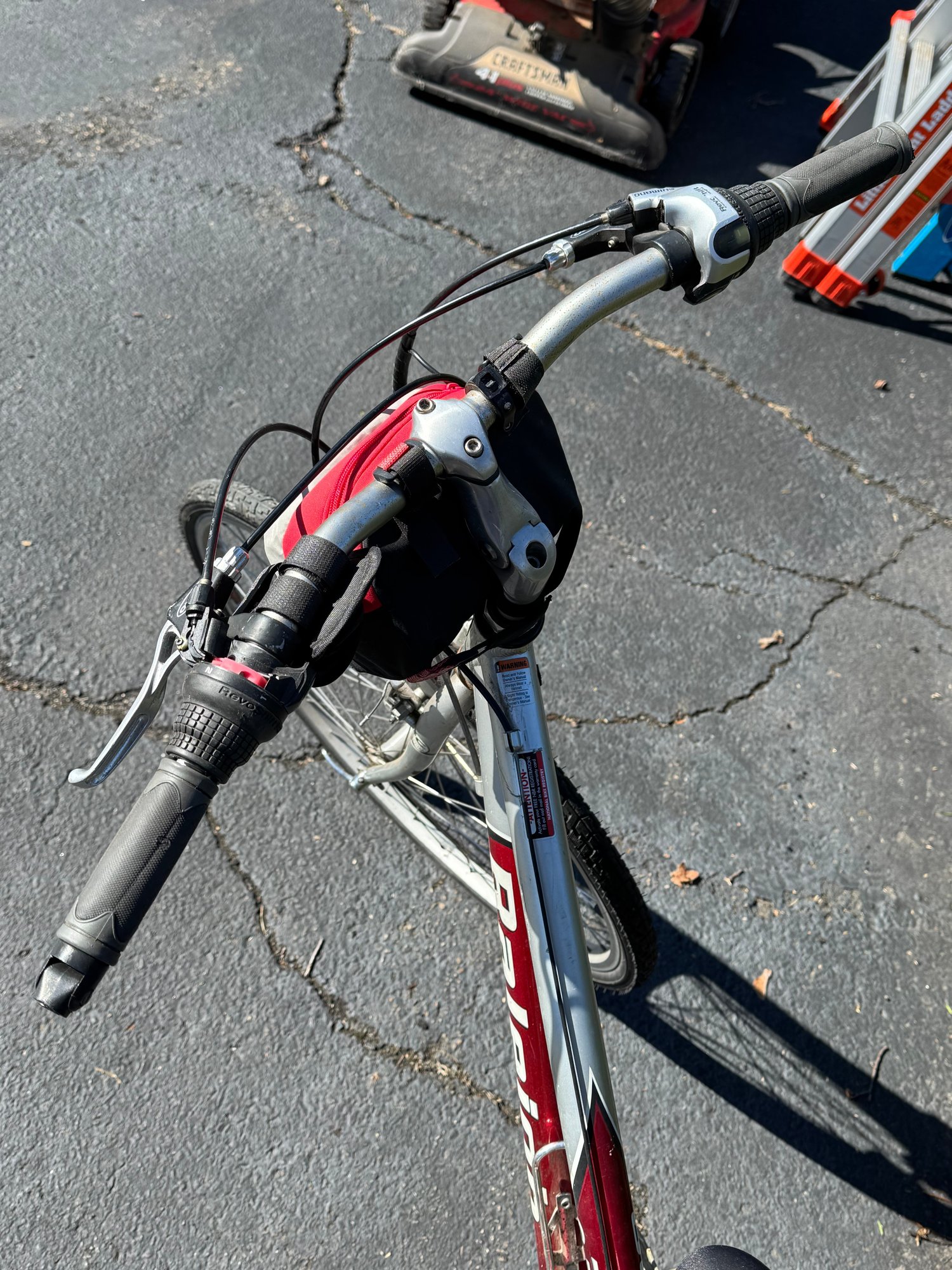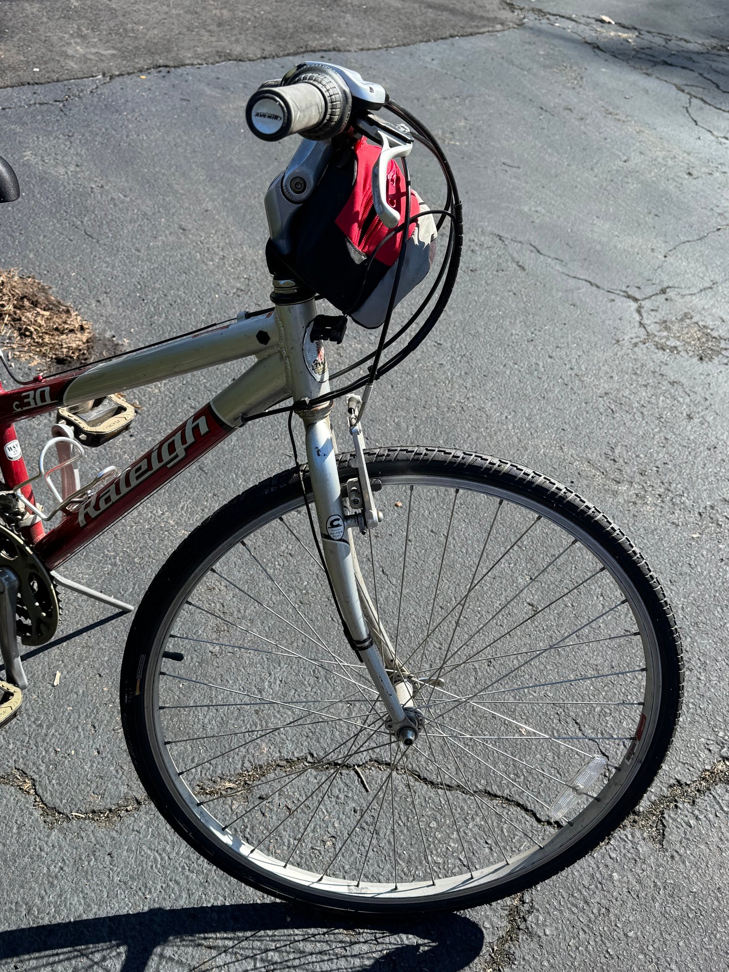The tires hold air and the bike rides well. The left gear shifter has some broken plastic on the handlebar but still changes gear and rides as it should.