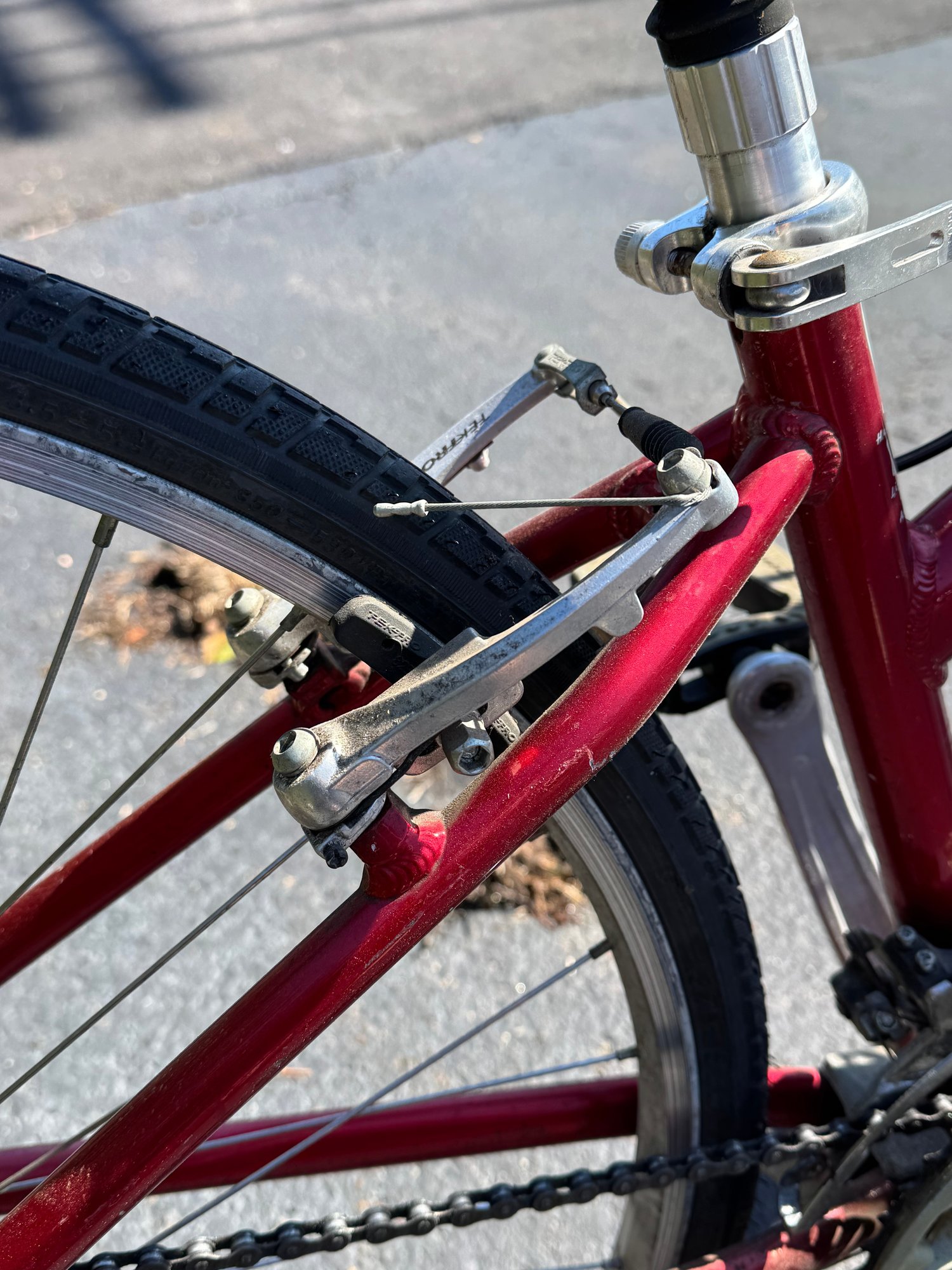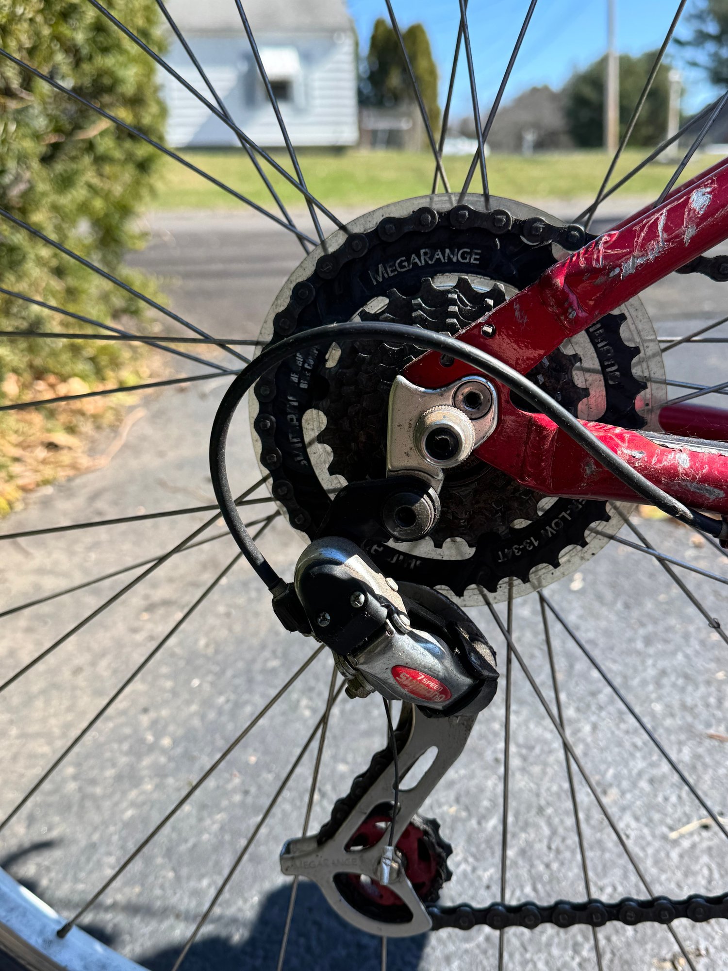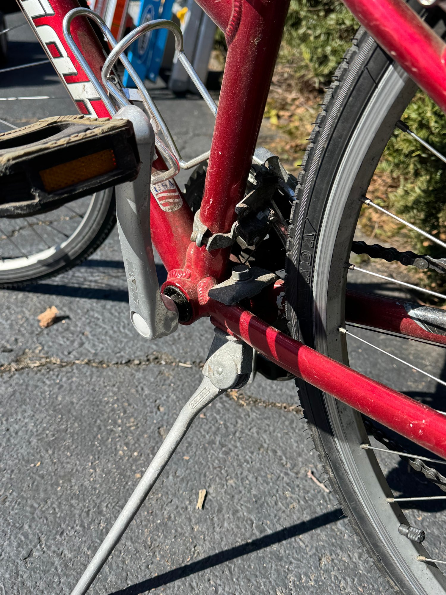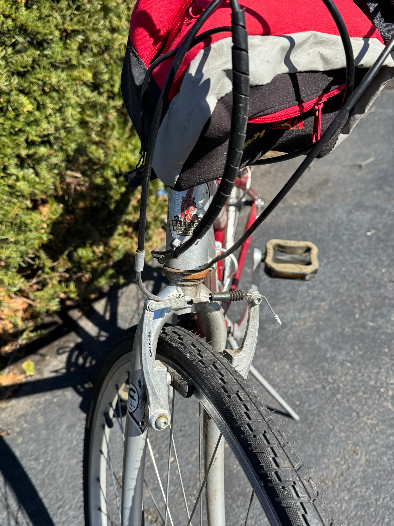 The tires hold air and the bike rides well. The left gear shifter has some broken plastic on the handlebar but still changes gear and rides as it should.