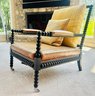 Ralph Lauren vintage Bohemian Spindle, upholstered leather seat and fabric back pillow.