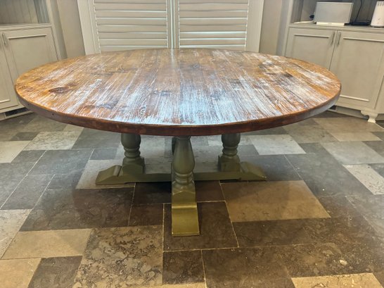 Gorgeous round pine dining table measuring a grand 72"W X 31"H.