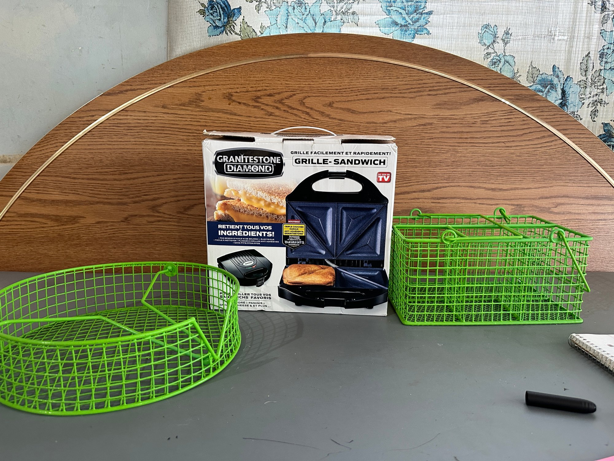 Granite Stone Diamond Sandwich Grille New In Box With Picnic Holder And Flatware Holder