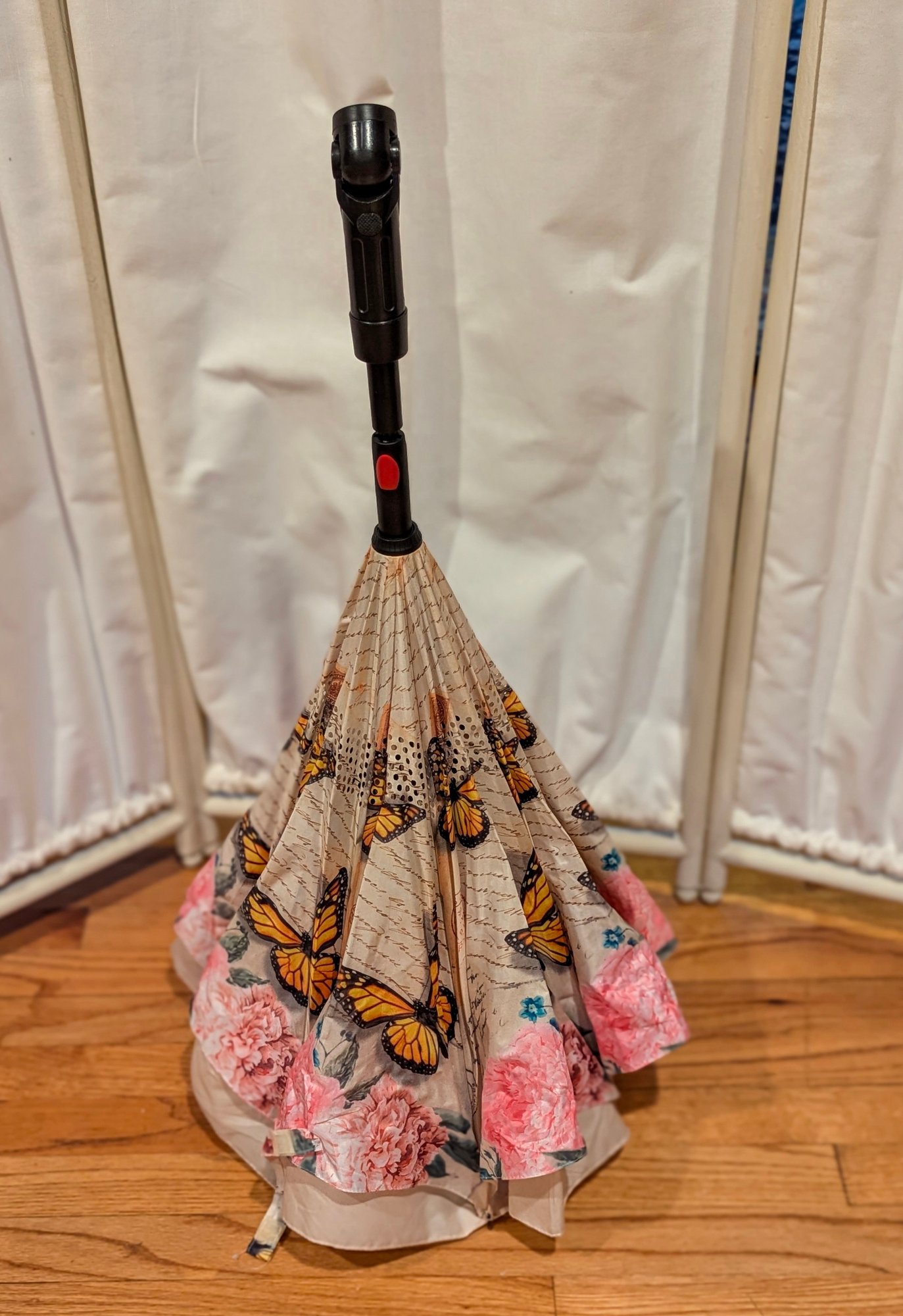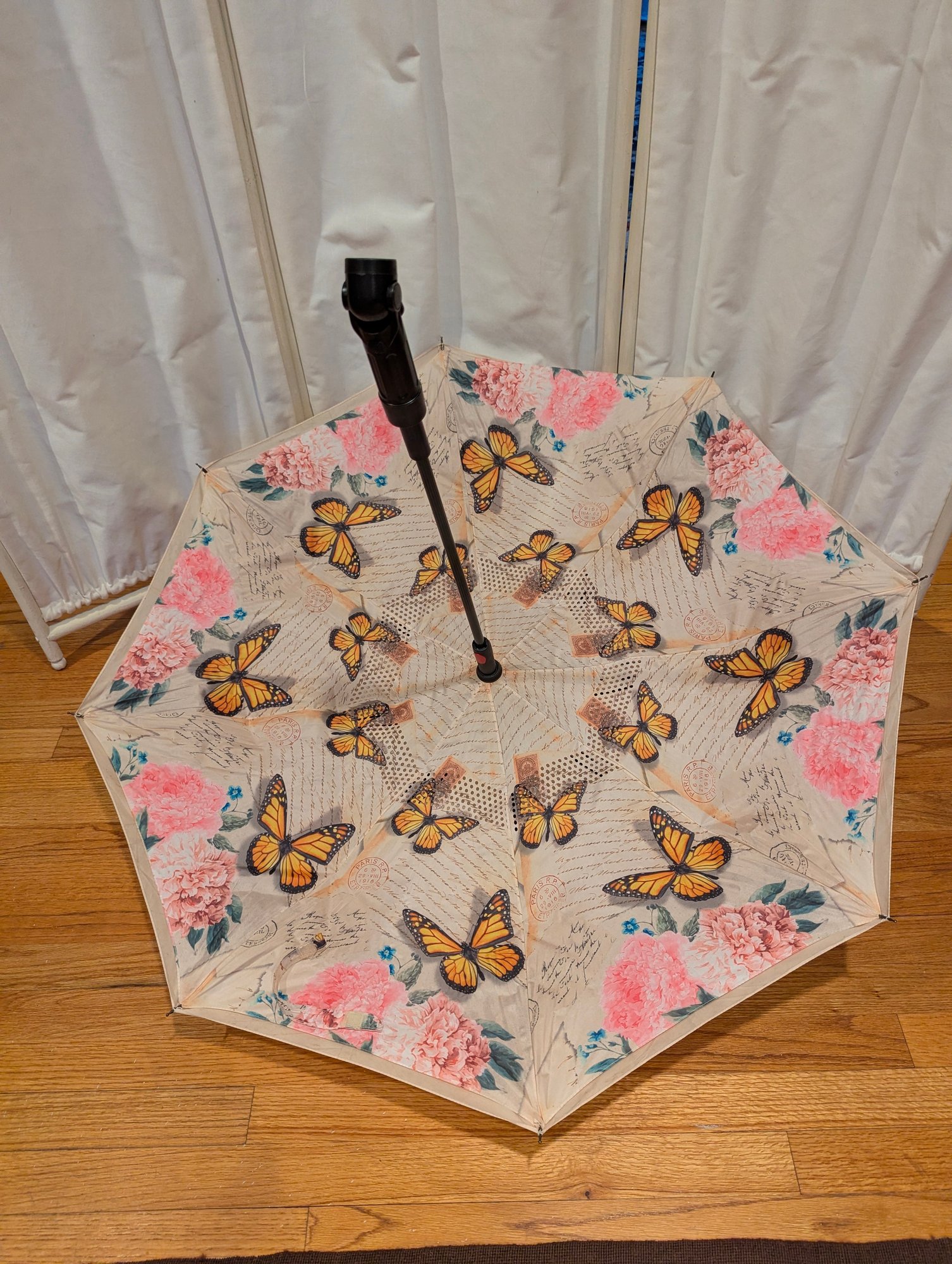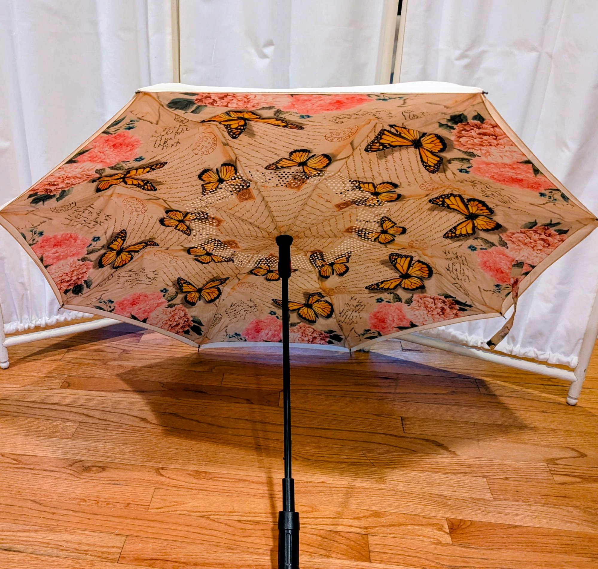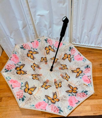 Rare French Themed Butterfly And Flower Reverse Closing Parasol With LED Light