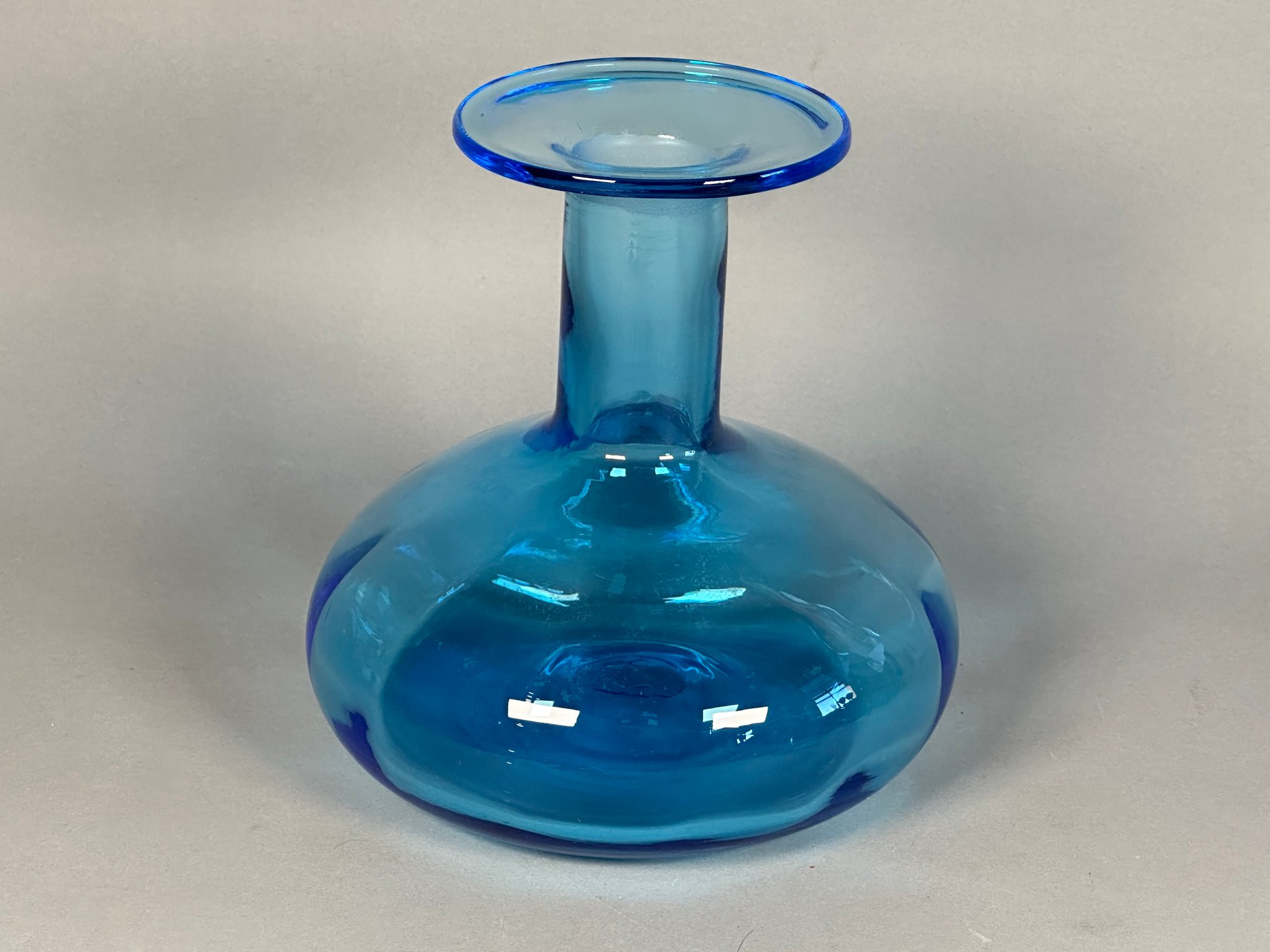 Rare Vintage Blenko Blown Blue Glass Decanter With Flared Mouth