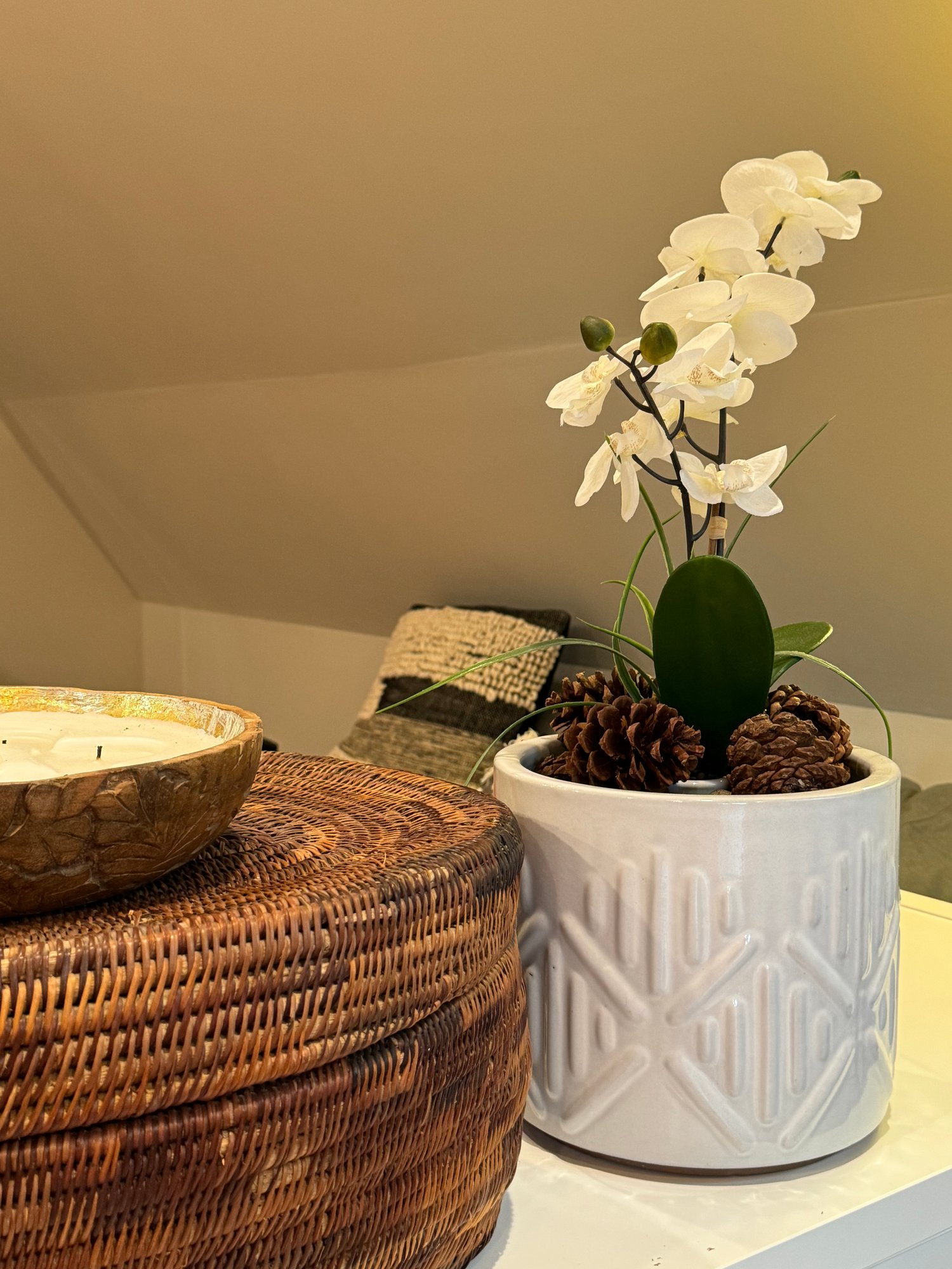 White Planter With Flower